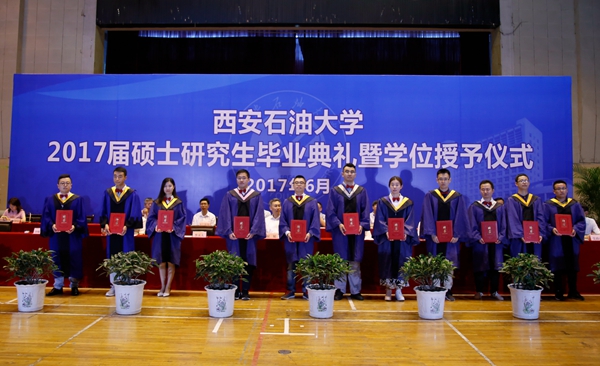 校黨委副書記雷西合宣讀了《西安石油大學(xué)關(guān)于表彰獎(jiǎng)勵(lì)2017屆優(yōu)秀畢業(yè)生的決定》。副校長(zhǎng)陳軍斌宣讀了《西安石油大學(xué)關(guān)于授予婁尚等599名研究生碩士學(xué)位的決定》。