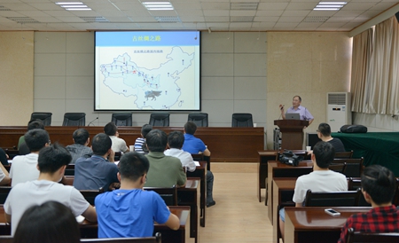 張洪泉教授在報(bào)告中與師生分享了他持續(xù)關(guān)注并潛心研究的羅布泊對氣候和生態(tài)影響的研究成果,提出了近50年來中國西北戈壁灘周圍生態(tài)環(huán)境惡化是由于羅布泊的消失以及塔里木盆地內(nèi)水體持續(xù)西移造成的觀點(diǎn)。他運(yùn)用大量實(shí)例、數(shù)據(jù),闡述了羅布泊從古至今環(huán)境變遷的原因和機(jī)理,并提出了恢復(fù)羅布泊、改善大西北生態(tài)環(huán)境的具體方案。張洪泉教授認(rèn)真嚴(yán)謹(jǐn)?shù)目蒲芯?、談古論今的講授風(fēng)格,贏得了我校師生的一致好評。