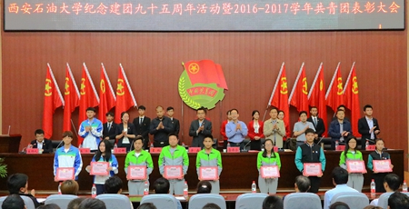 5月4日下午,我校紀(jì)念建團(tuán)九十五周年活動(dòng)暨2016——2017學(xué)年共青團(tuán)表彰大會(huì)在新校區(qū)圖書館弘石報(bào)告廳召開。校黨委副書記雷西合、團(tuán)省委學(xué)校部辛磊老師出席大會(huì)。相關(guān)部門負(fù)責(zé)人,各院(系)團(tuán)委書記、師生代表共400余人參加了大會(huì)。