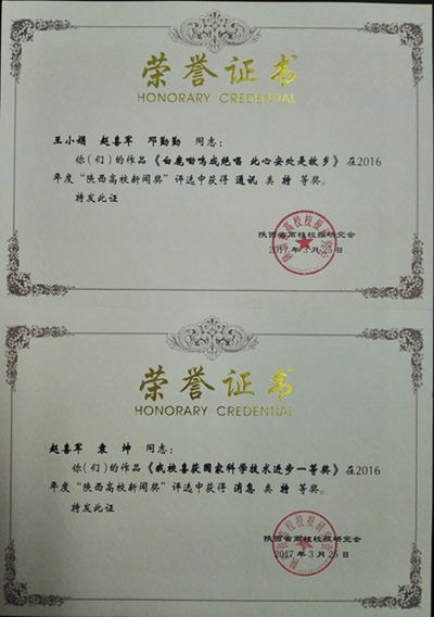 “陜西高校新聞獎”分為“消息類”、“通訊類”、“言論類”、“新聞專欄類”、“新聞圖片類”、“版面類” 六個類別。通訊員杜永峰采寫的《我校陜西省“非常規(guī)油氣勘探開發(fā)協(xié)同創(chuàng)新中心”通過認(rèn)定》,記者趙喜軍、通訊員袁坤采寫的《我校喜獲國家科學(xué)技術(shù)進步一等獎》獲得消息類特等獎;記者楊明、通訊員武曉朦采寫的《學(xué)校多措并舉助推青年教師成長》獲得消息類一等獎。