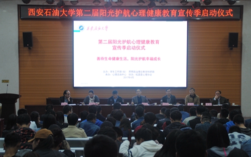 啟動(dòng)儀式上,表彰了陜西普通高校“十年心理成果優(yōu)秀論文”、“優(yōu)秀心理主題班會(huì)”和“優(yōu)秀校園心理情景劇”獲獎(jiǎng)集體和個(gè)人;為2016年獲得心理咨詢師證書(shū)的學(xué)工干部頒發(fā)了證書(shū);校心理咨詢中心主任鄭林科教授介紹了宣傳季的有關(guān)活動(dòng)安排;機(jī)械工程學(xué)院輔導(dǎo)員喬曉、心理咨詢中心老師魏曉言、心理協(xié)會(huì)學(xué)生代表李天浪同學(xué)分別作了發(fā)言;全體與會(huì)人員進(jìn)行了“善愛(ài)我”宣誓。