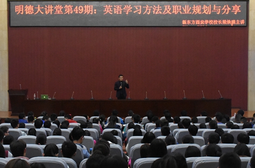 3月28日晚,由校團委主辦的第49期明德大講堂之《英語學(xué)習(xí)方法及職業(yè)規(guī)劃與分享》在新校區(qū)圖書館弘石學(xué)術(shù)報告廳舉辦。新東方西安學(xué)校副校長梁煥臻老師擔(dān)任主講,400余名學(xué)生聽取了講座。