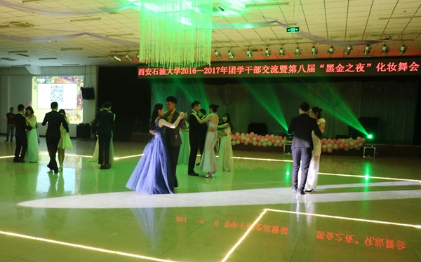舞會現(xiàn)場燈光搖曳,氣氛浪漫,團學(xué)干部伴著一支支舞曲輕盈起舞。“黑金之夜”團學(xué)干部交流會是校團委、校學(xué)生會為鼓勵各級團學(xué)干部在過去一年中為學(xué)校校園文化、實踐育人、學(xué)風(fēng)建設(shè)等各項工作中做出的貢獻,特地舉辦的一個便于團學(xué)干部相互溝通、相互交流的活動,有助于提高我校團學(xué)干部的綜合素質(zhì)及營造良好的校園氛圍。