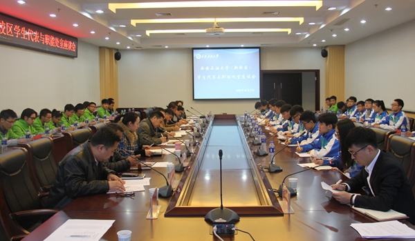 12月8日下午,2016-2017學(xué)年學(xué)生代表與職能處室座談會(huì)在新校區(qū)圖書館第二會(huì)議室召開。校黨委副書記雷西合、各職能處室負(fù)責(zé)人及新校區(qū)30余名學(xué)生代表參加會(huì)議。