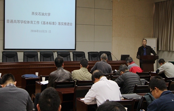 11月21日下午,我校召開陜西省《高等學(xué)校體育工作基本標(biāo)準(zhǔn)》落實推進(jìn)會。副校長陳軍斌出席會議。相關(guān)部門、各院(部、系)負(fù)責(zé)人參加了會議。會議由體育系黨總支書記倪振文主持。