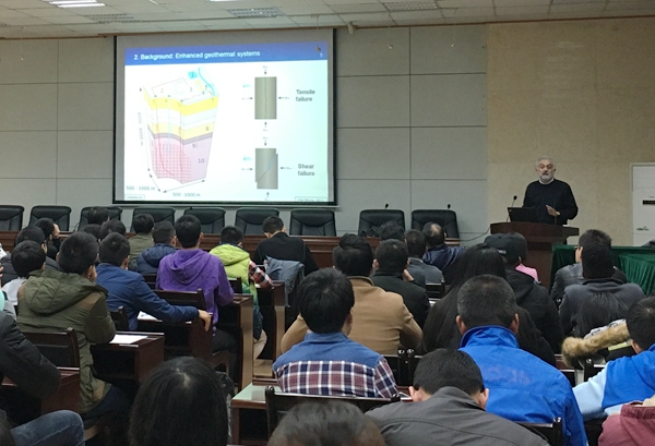 在校期間,Tayfun教授、金哲輝博士為我校師生作了學(xué)術(shù)報告。他們分別以“提高致密砂巖儲層原油采收率的研究”、“分子角度的頁巖介質(zhì)中流體相態(tài)及流動的熱動力學(xué)建模研究”、“What Should I Do Before I Graduate to Build a Strong Petroleum Engineering Career”為題,利用生動的圖表與豐富的數(shù)據(jù)展示了各自最新的研究成果,尤其就非常規(guī)地質(zhì)儲層的特征研究、儲層巖石力學(xué)性能分析、儲層流體微觀滲流機理、儲層改造技術(shù)與室內(nèi)實驗研究等方面內(nèi)容進行了詳細介紹,并在講座最后與我校師生進行了交流。