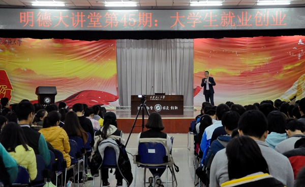 10月27日晚,由校團委主辦、化學化工學院承辦的第45期明德大講堂之《大學生就業(yè)創(chuàng)業(yè)》在新校區(qū)騰輝大學生活動中心舉辦。西安鉑力特激光成形技術有限公司創(chuàng)始人之一薛蕾總經(jīng)理擔任主講,新校區(qū)四百余名學生參加了講座。