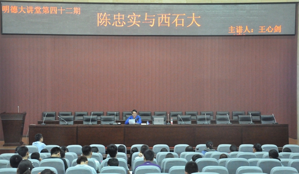 9月29日晚,由校團委主辦的校慶65周年系列活動之明德大講堂第42期《陳忠實與西石大》在新校區(qū)圖書館弘石報告廳舉辦。我校人文學(xué)院王心劍教授擔(dān)任主講,校團委副書記何國強老師主持講座,新校區(qū)300余名師生聽取了講座。