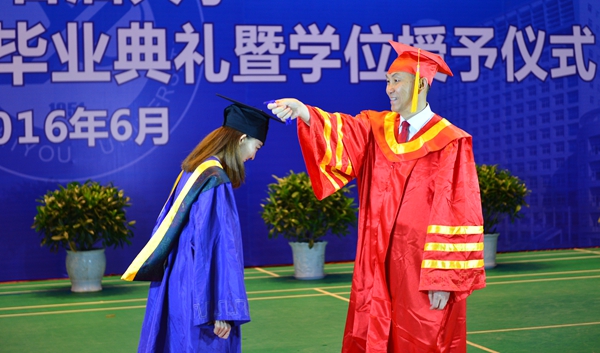 屈展校長在典禮上發(fā)表了熱情洋溢的致辭。他代表學(xué)校向順利完成學(xué)業(yè)、即將踏上新的人生征程的2016屆研究生表示熱烈的祝賀和真誠的祝福,向所有為研究生教育和培養(yǎng)做出貢獻(xiàn)的老師們表示誠摯的感謝和崇高的敬意。屈校長對即將走出校門的研究生提出了四點(diǎn)希望:一是希望大家懂得仰望星空決定著人生的高度;二是希望大家懂得腳踏實(shí)地決定著人生的厚度;三是希望大家懂得堅(jiān)守本心決定著人生的底線;四是希望大家懂得獨(dú)立思考決定著人生的能力。