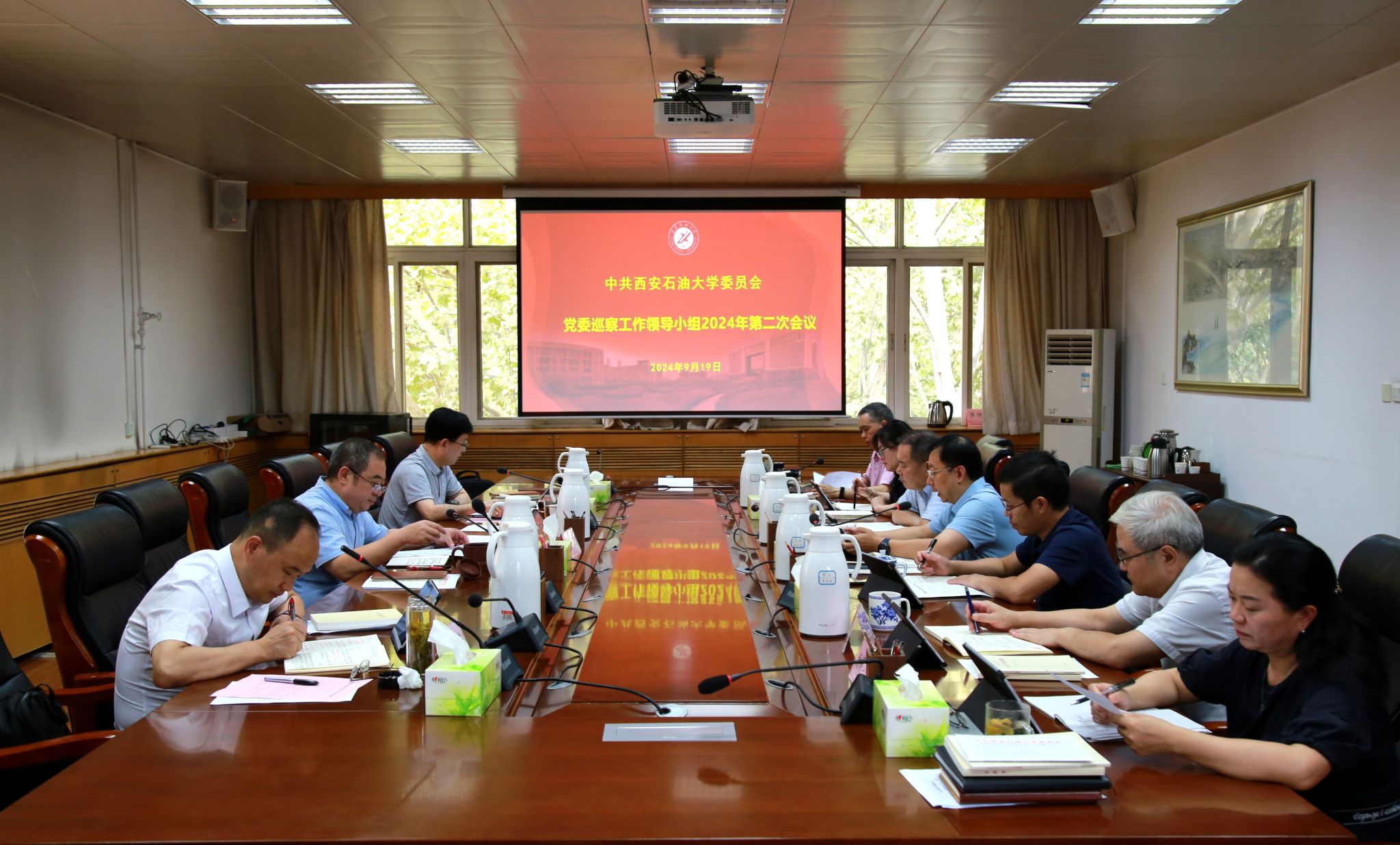 9月19日下午,學校在雁塔校區(qū)行政樓五樓會議室召開黨委巡察工作領(lǐng)導小組2024年第二次會議,審議《第三屆黨委第一輪巡察工作實施方案》,部署安排有關(guān)工作。校黨政領(lǐng)導常江、王輝強、趙健出席。校黨委巡察工作領(lǐng)導小組成員單位和黨委統(tǒng)戰(zhàn)部、黨委學生工作部、黨委保衛(wèi)部、研究生工作部主要負責人參加會議。會議由校黨委副書記、紀委書記、監(jiān)察專員、黨委巡察工作領(lǐng)導小組副組長王輝強主持。