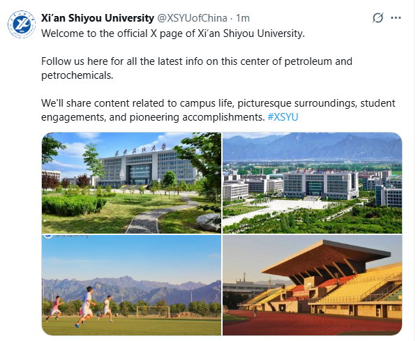 西安石油大學(xué)X平臺(tái)賬號(hào):https://x.com/XSYUofChina