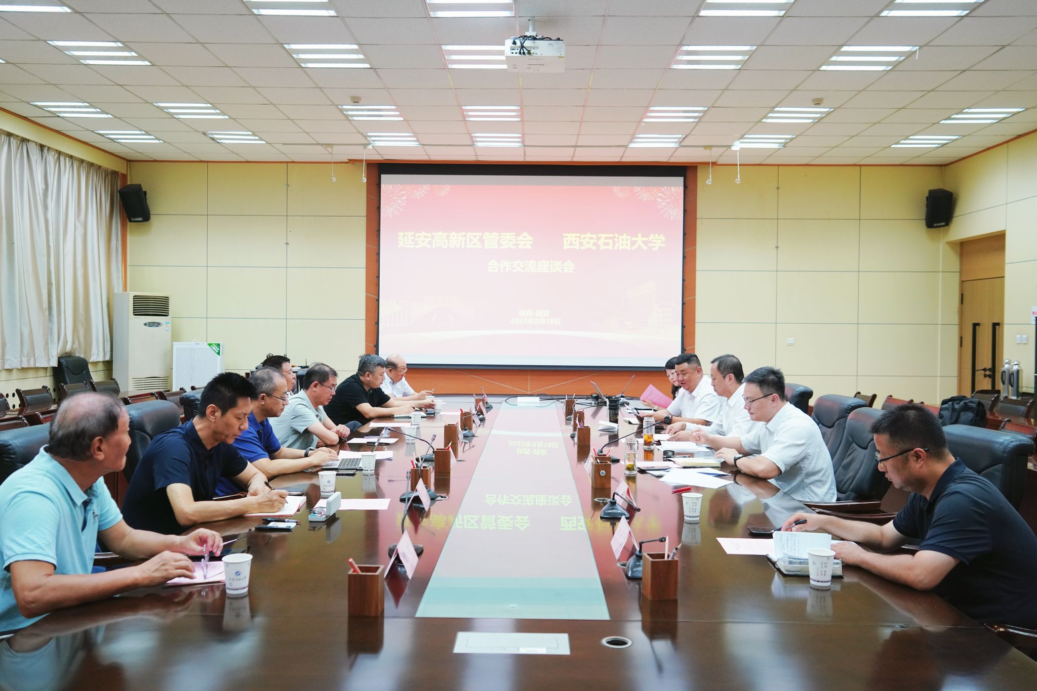 8月18日上午,延安高新技術產(chǎn)業(yè)開發(fā)區(qū)黨工委副書記、管委會主任尚文隆率隊來校就深化產(chǎn)學研協(xié)同、共建高水平創(chuàng)新平臺等相關事宜交流座談。延安高新區(qū)黨工委委員,延安能源裝備集團(簡稱“集團”)黨委書記、董事長丁許軍,集團總經(jīng)理、延安嘉盛公司董事長蘇忠貴,集團副總經(jīng)理、延安石源公司董事長劉建忠,集團副總經(jīng)理、延安嘉盛公司總經(jīng)理蘇小東陪同來訪。我校副校長張榮軍出席座談會并講話。