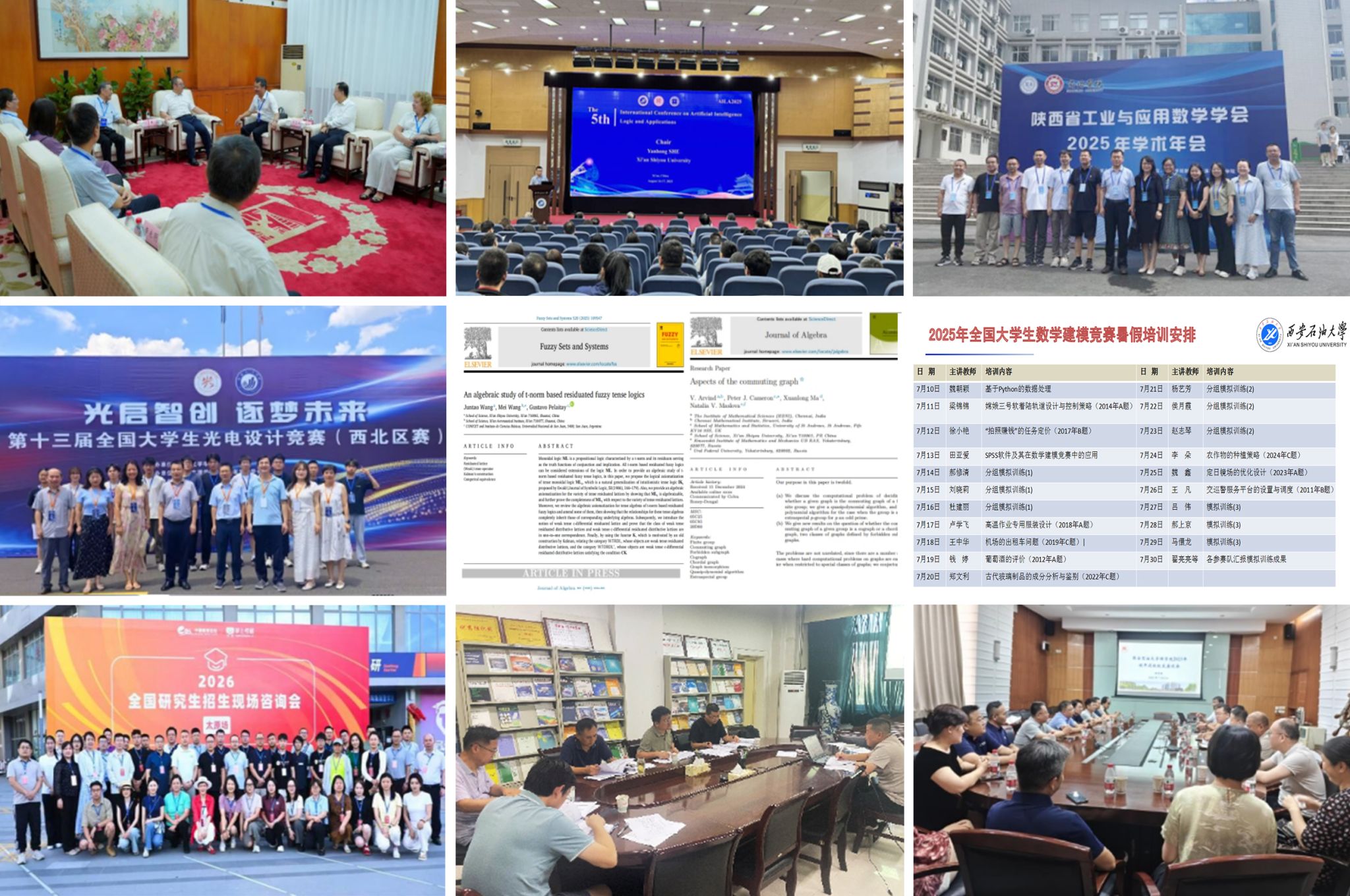 一是凝心聚力促發(fā)展。學(xué)院錨定“夯實基礎(chǔ)、交叉賦能、服務(wù)能源”定位,通過召開專題會議研究制定了學(xué)院2025-2028年學(xué)科建設(shè)規(guī)劃,為學(xué)院高質(zhì)量發(fā)展進(jìn)行全面布局。二是學(xué)術(shù)交流促提升。承辦第五屆人工智能邏輯與應(yīng)用國際會議,吸引80余位國內(nèi)外知名高校專家學(xué)者參加,專項資助近20名教師赴國內(nèi)外參加各類高水平學(xué)術(shù)會議。三是科研團(tuán)隊結(jié)碩果。學(xué)院代數(shù)及其應(yīng)用團(tuán)隊在Journal of Algebra、Fuzzy Sets and System等學(xué)界頂刊發(fā)表論文。四是光電競賽創(chuàng)佳績。在第十三屆全國光電設(shè)計競賽獲西北區(qū)賽一等獎2項、優(yōu)秀組織獎。五是建模培訓(xùn)筑根基,組織21位教師、120余名本科生開展全國大學(xué)生數(shù)學(xué)、物理學(xué)科建模競賽培訓(xùn)。六是精準(zhǔn)對接育人才,開展2025版本科生培養(yǎng)方案修訂工作,組織教師赴多地開展研究生招生宣傳。