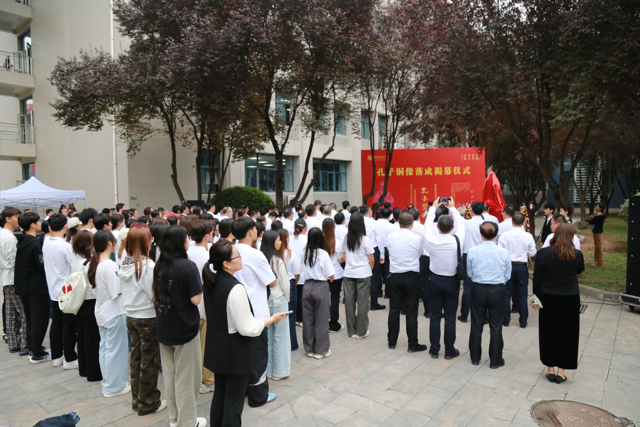 9月10日下午,學(xué)校在鄠邑校區(qū)朝源廣場(chǎng)舉行孔子銅像揭幕儀式。校長(zhǎng)王進(jìn)富、校黨委副書記張木、副校長(zhǎng)張君濤,以及教師節(jié)受表彰教師代表、在鄠邑校區(qū)工作的正處級(jí)干部與學(xué)生代表共計(jì)150余人出席了本次活動(dòng)。儀式由校黨委副書記程永清主持。