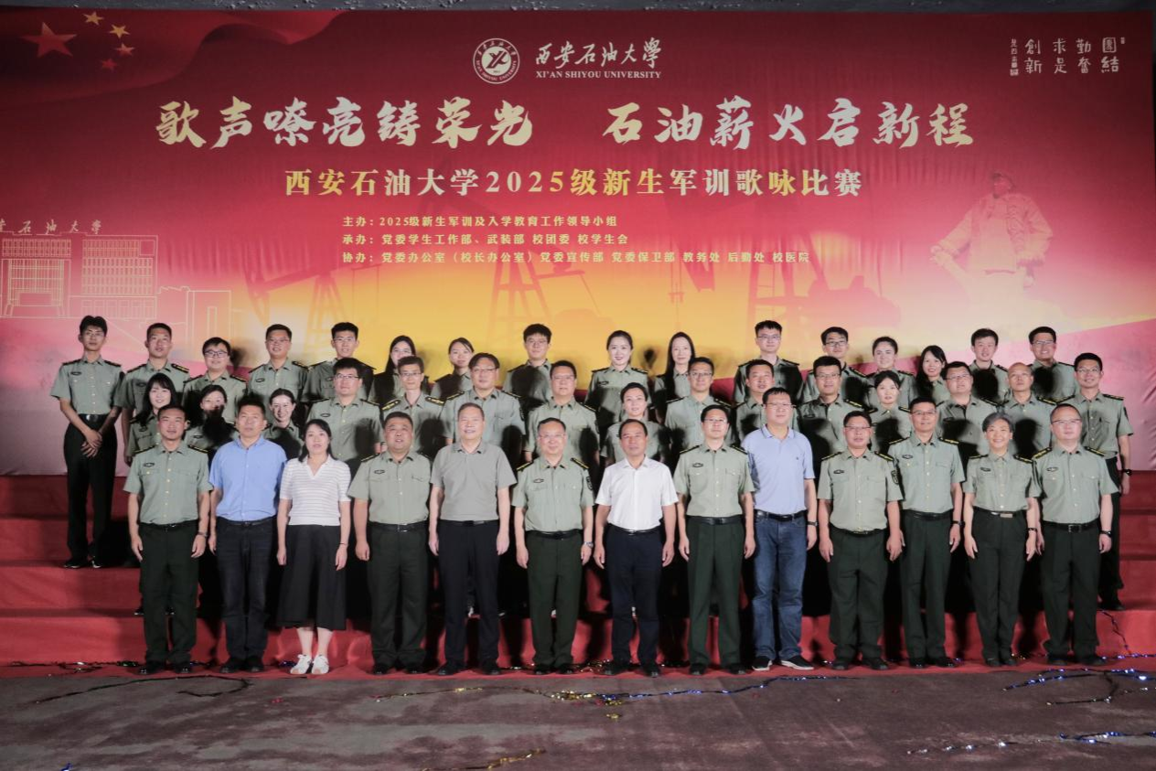 9月15日晚,我?!案杪曕诹凌T榮光,石油薪火啟新程”2025級(jí)新生軍訓(xùn)歌詠比賽在鄠邑校區(qū)西田徑場(chǎng)舉行,學(xué)校軍訓(xùn)工作領(lǐng)導(dǎo)小組組長(zhǎng)、副校長(zhǎng)種宇宏,中國(guó)人民解放軍某部隊(duì)武少杰中校出席活動(dòng)。學(xué)校黨委辦公室(校長(zhǎng)辦公室)、黨委宣傳部、黨委學(xué)生工作部、黨委保衛(wèi)部、團(tuán)委、教務(wù)處、后勤處、校醫(yī)院等軍訓(xùn)工作領(lǐng)導(dǎo)小組成員單位負(fù)責(zé)人擔(dān)任評(píng)委,各院(系)主管學(xué)生工作負(fù)責(zé)人,全體參訓(xùn)教官、學(xué)工干部和2025級(jí)新生觀看了比賽。