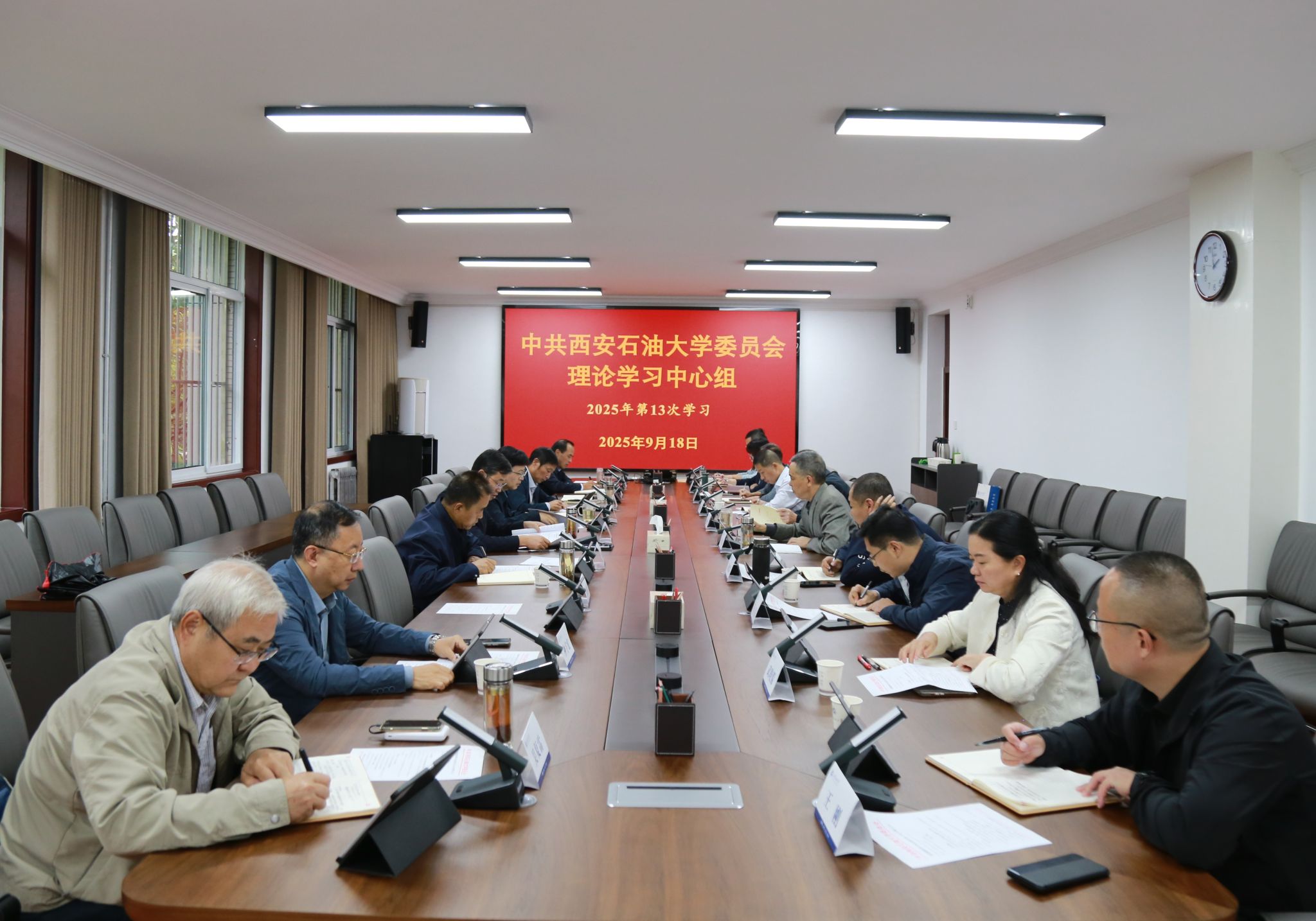 9月18日下午,校黨委理論學(xué)習(xí)中心組2025年第13次學(xué)習(xí)會(huì)在鄠邑校區(qū)行政樓第三會(huì)議室召開,深入學(xué)習(xí)領(lǐng)會(huì)習(xí)近平在紀(jì)念中國人民抗日戰(zhàn)爭暨世界反法西斯戰(zhàn)爭勝利80周年大會(huì)上、在上海合作組織成員國元首理事會(huì)第二十五次會(huì)議上的重要講話精神,“鍥而不舍落實(shí)中央八項(xiàng)規(guī)定精神 推進(jìn)作風(fēng)建設(shè)常態(tài)化長效化”的重要指示精神,勉勵(lì)全國特崗教師代表的重要回信精神,以及《習(xí)近平談治國理政》(第五卷),中省有關(guān)會(huì)議、文件等。校黨委副書記、校長王進(jìn)富主持并講話,校黨委理論學(xué)習(xí)中心組成員參加會(huì)議。