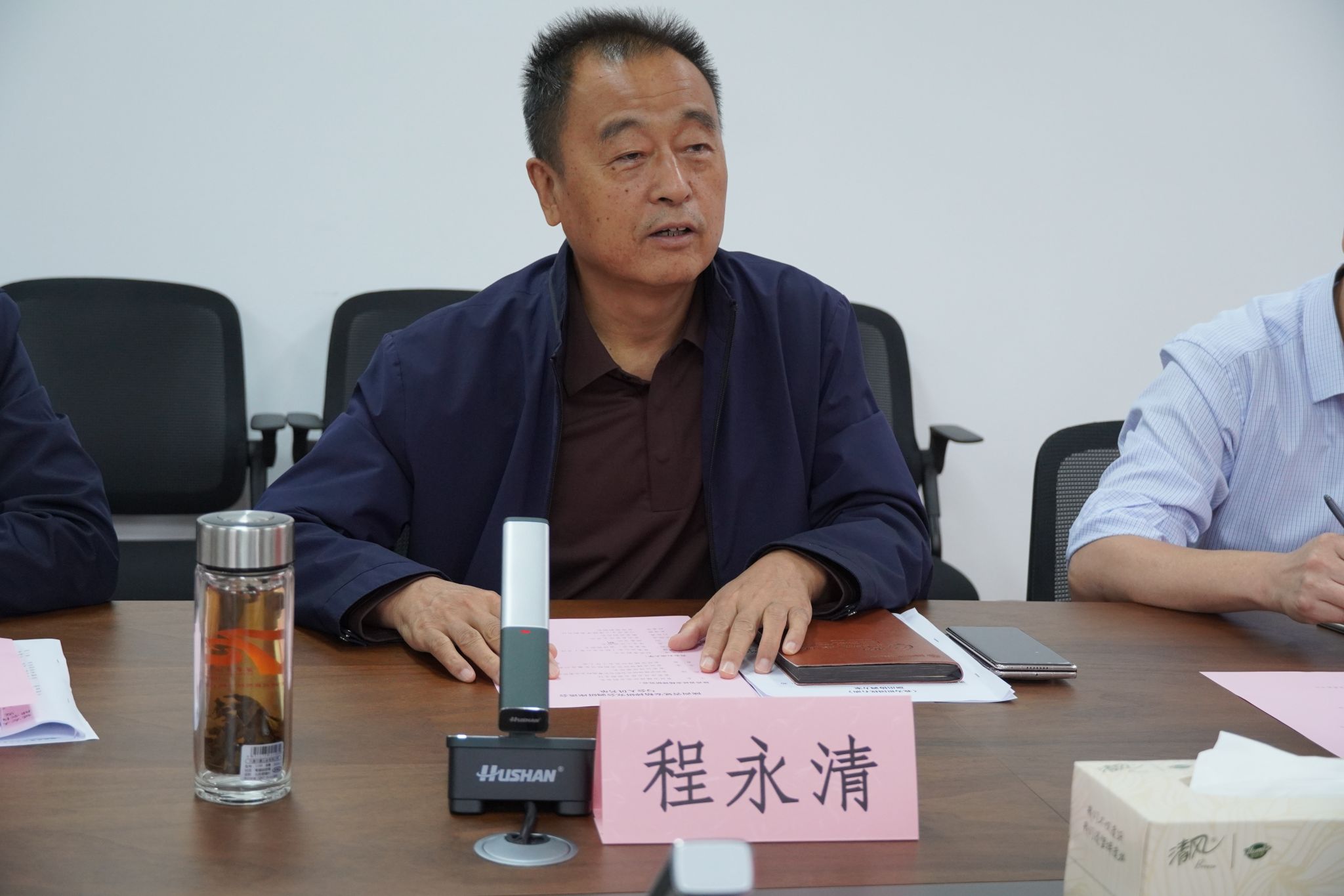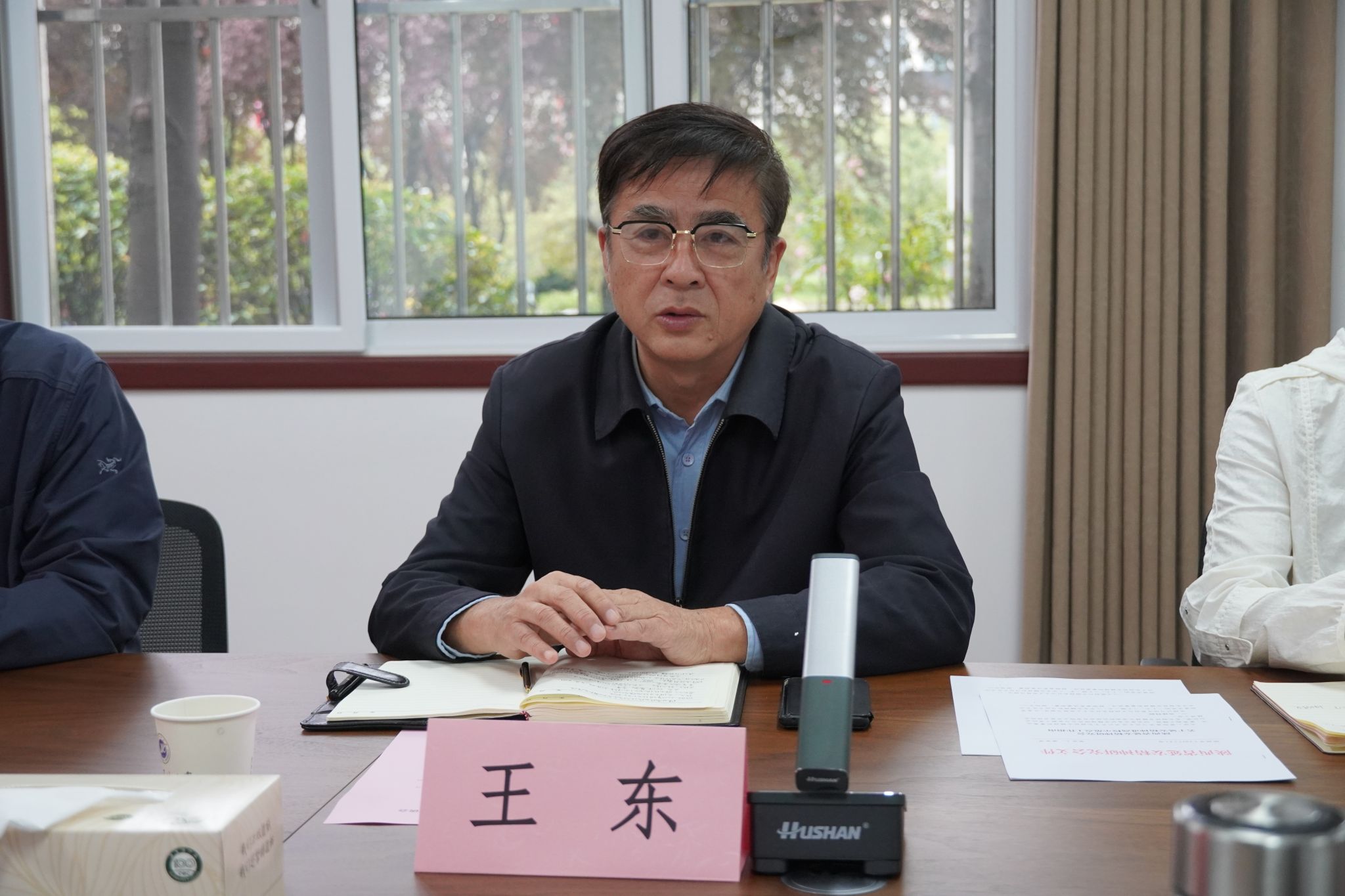 鄭仲介紹了本次調(diào)研旨在了解學校情況、統(tǒng)一工作認識、對接具體工作、推動方案落實。他表示,學校相關(guān)工作內(nèi)容與延安精神進校園的整體規(guī)劃高度契合,希望通過雙方合作,將西安石油大學建設為踐行延安精神的示范學校。