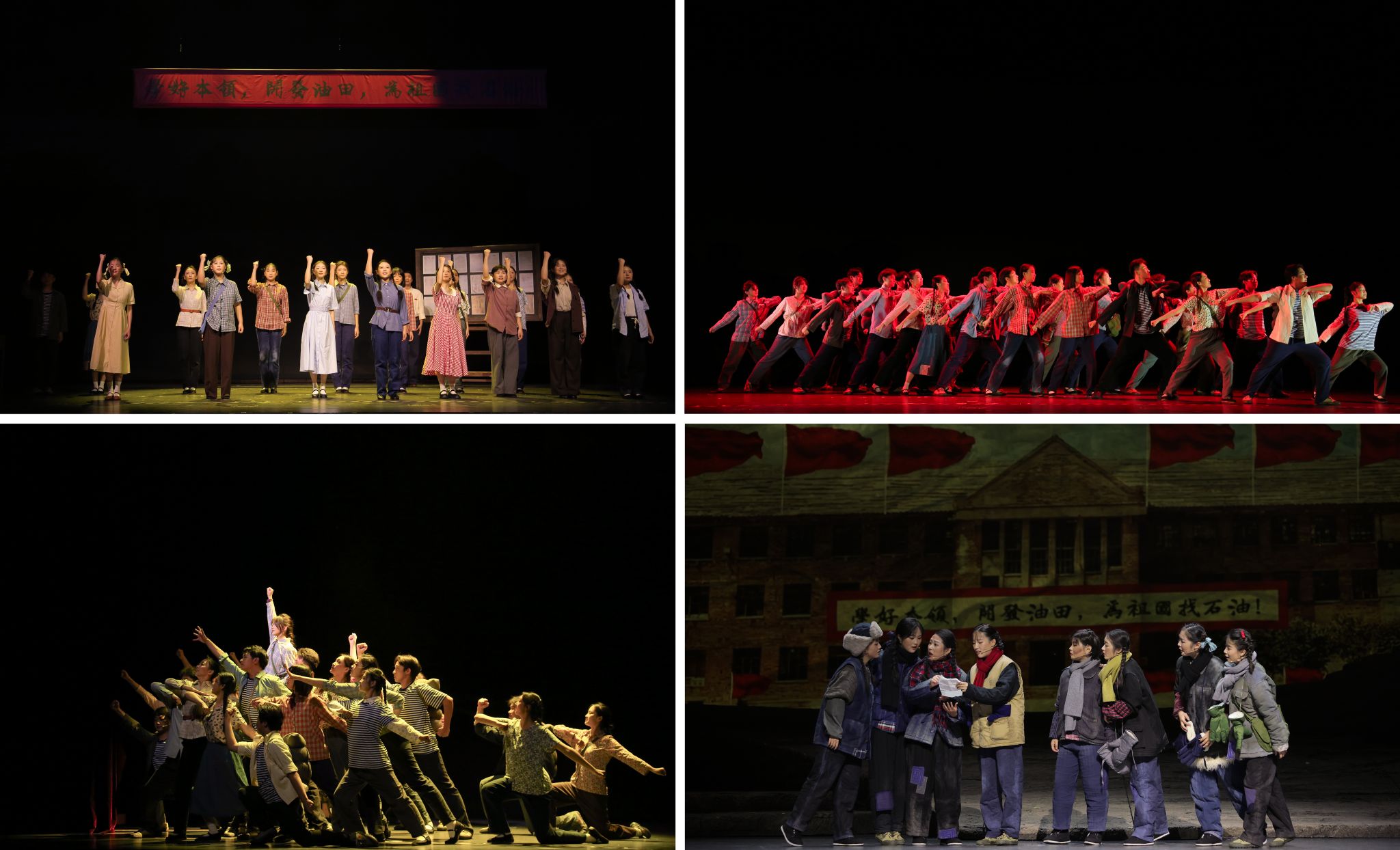 多元敘事融合,助力精神賡續(xù)。全劇分為“到大西北去”“到最艱苦的地方去”“到祖國(guó)最需要的地方去”三個(gè)邏輯緊密的篇章,以時(shí)空交錯(cuò)手法連貫歷史與現(xiàn)實(shí),展現(xiàn)了石油事業(yè)的奮斗歷程與時(shí)代回響。作品綜合運(yùn)用音樂(lè)、舞蹈、戲劇等多種舞臺(tái)語(yǔ)言,結(jié)合精心設(shè)計(jì)的舞美,構(gòu)建出沉浸式視聽(tīng)場(chǎng)景,極大地增強(qiáng)了劇目的藝術(shù)感染力與視覺(jué)沖擊力,通過(guò)現(xiàn)代藝術(shù)手法與多元敘事結(jié)構(gòu)的融合,實(shí)現(xiàn)了精神傳承與藝術(shù)呈現(xiàn)的深度融合。