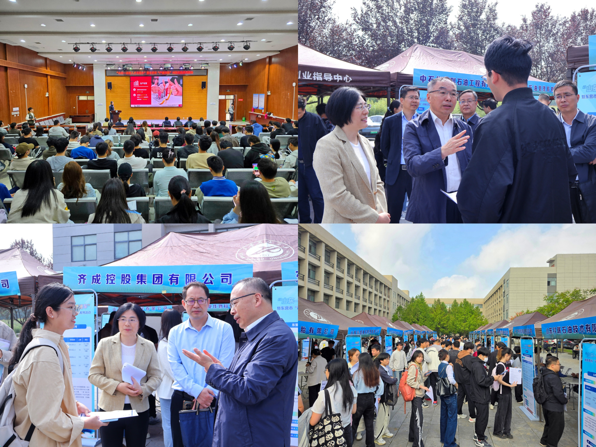 與此同時,東營市組團專場招聘會在崇文樓118報告廳和江漢林廣場同步開展,東營市公共就業(yè)和人才服務中心副主任朱鳳鸞詳細介紹了當?shù)厝瞬虐l(fā)展環(huán)境、住房補貼、就業(yè)扶持等優(yōu)惠政策。多家重點企業(yè)代表圍繞企業(yè)主營業(yè)務、崗位需求、發(fā)展前景等內容進行宣講,現(xiàn)場解答學生關于職業(yè)規(guī)劃、崗位要求等疑問,吸引兩百余名畢業(yè)生到場聆聽,為畢業(yè)生與企業(yè)搭建起直接溝通的橋梁。宣講會后,省市領導在學校相關負責人陪同下前往招聘現(xiàn)場,實地查看畢業(yè)生求職情況?,F(xiàn)場氣氛熱烈,畢業(yè)生們積極與企業(yè)招聘人員交流,圍繞崗位專業(yè)要求、薪資待遇、職業(yè)發(fā)展空間等問題深入咨詢,部分學生與企業(yè)初步達成就業(yè)意向。隨后,校地雙方領導參觀我校校史館及鐵人王進喜紀念館,通過歷史圖片、實物展品與文字介紹,全面了解我校的發(fā)展歷程、辦學成就與人才培養(yǎng)特色,對我校長期扎根能源領域、為國家能源事業(yè)發(fā)展作出的貢獻給予高度評價。