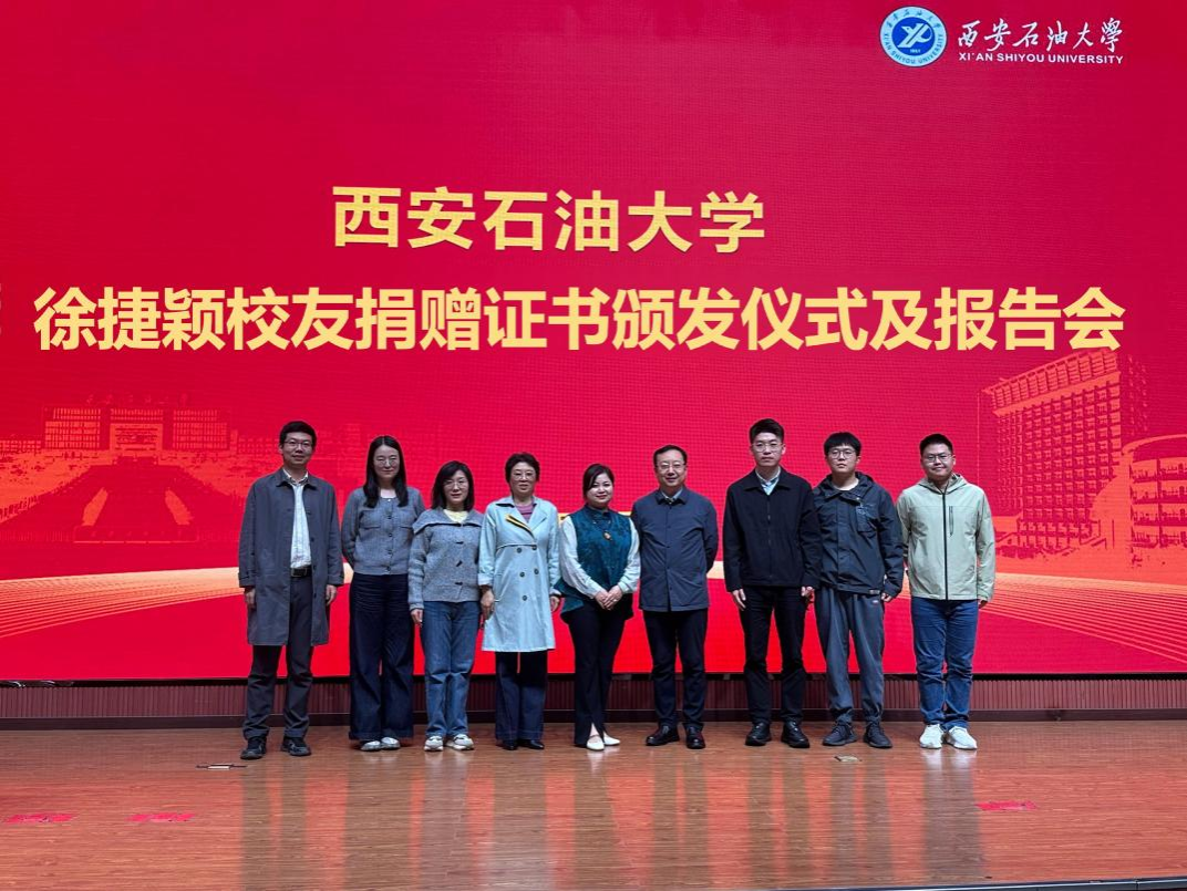 10月11日下午,徐捷穎校友捐贈證書頒發(fā)儀式暨報告會在鄠邑校區(qū)弘石學(xué)術(shù)報告廳舉行。副校長種宇宏,“穎享力”創(chuàng)始人、西安石油大學(xué)2001屆校友徐捷穎,黨委學(xué)生工作部部長王亮及各院(系)師生代表共400余人參加了本次報告會。會議由黨委學(xué)生工作部副部長畢軼慧主持。