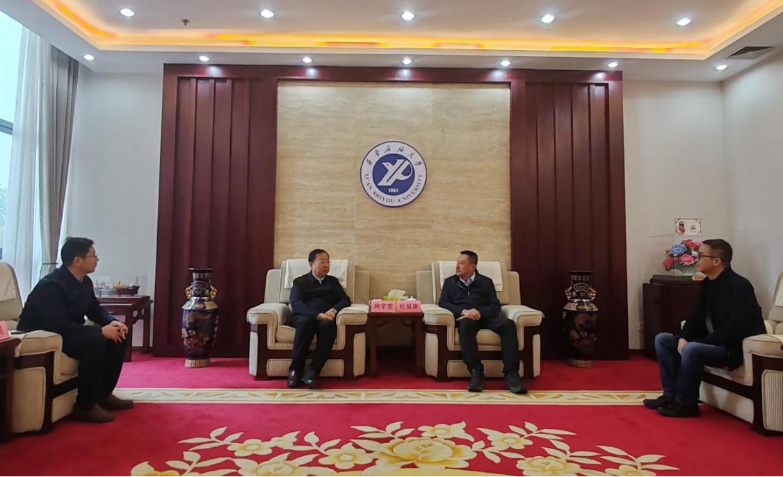 種宇宏代表學(xué)校對杜富康一行的到來表示熱烈歡迎,并詳細介紹了學(xué)校的發(fā)展歷程、學(xué)科特色、人才培養(yǎng)模式以及近年來取得的科研成果。他指出,西安石油大學(xué)始終致力于為石油石化行業(yè)培養(yǎng)高素質(zhì)人才,希望通過與中海殼牌一類的行業(yè)領(lǐng)軍企業(yè)合作,進一步提升人才培養(yǎng)質(zhì)量,實現(xiàn)產(chǎn)學(xué)研深度融合。杜富康對西安石油大學(xué)長期以來為中海殼牌輸送優(yōu)秀人才表示感謝。他系統(tǒng)介紹了中海殼牌的發(fā)展現(xiàn)狀、業(yè)務(wù)布局以及未來戰(zhàn)略規(guī)劃,強調(diào)了企業(yè)對高素質(zhì)人才的迫切需求。他表示,中海殼牌與西安石油大學(xué)在人才培養(yǎng)和技術(shù)創(chuàng)新方面有著廣闊的合作空間,期待雙方能夠進一步加強交流,共同推動石油石化行業(yè)的發(fā)展。雙方圍繞人才培養(yǎng)、實習(xí)就業(yè)、科研合作等議題展開了深入討論,并就建立長期穩(wěn)定的合作關(guān)系達成了共識。