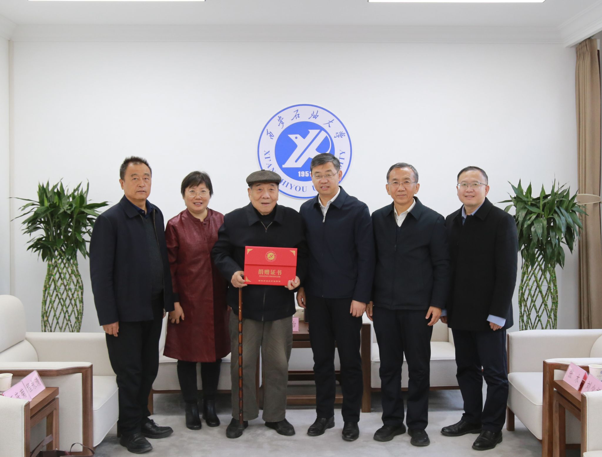11月17日下午,我校54級校友王國治向學校捐贈了西安石油學?!叭脤W生”獎狀、西安石油學校畢業(yè)證明、1978年全國科技大會獎勵證書等珍貴檔案。校長王進富,校黨委副書記張木、程永清在鄠邑校區(qū)行政樓二樓接待室會見王國治及其女兒王慶菊女士,并進行了交流座談。