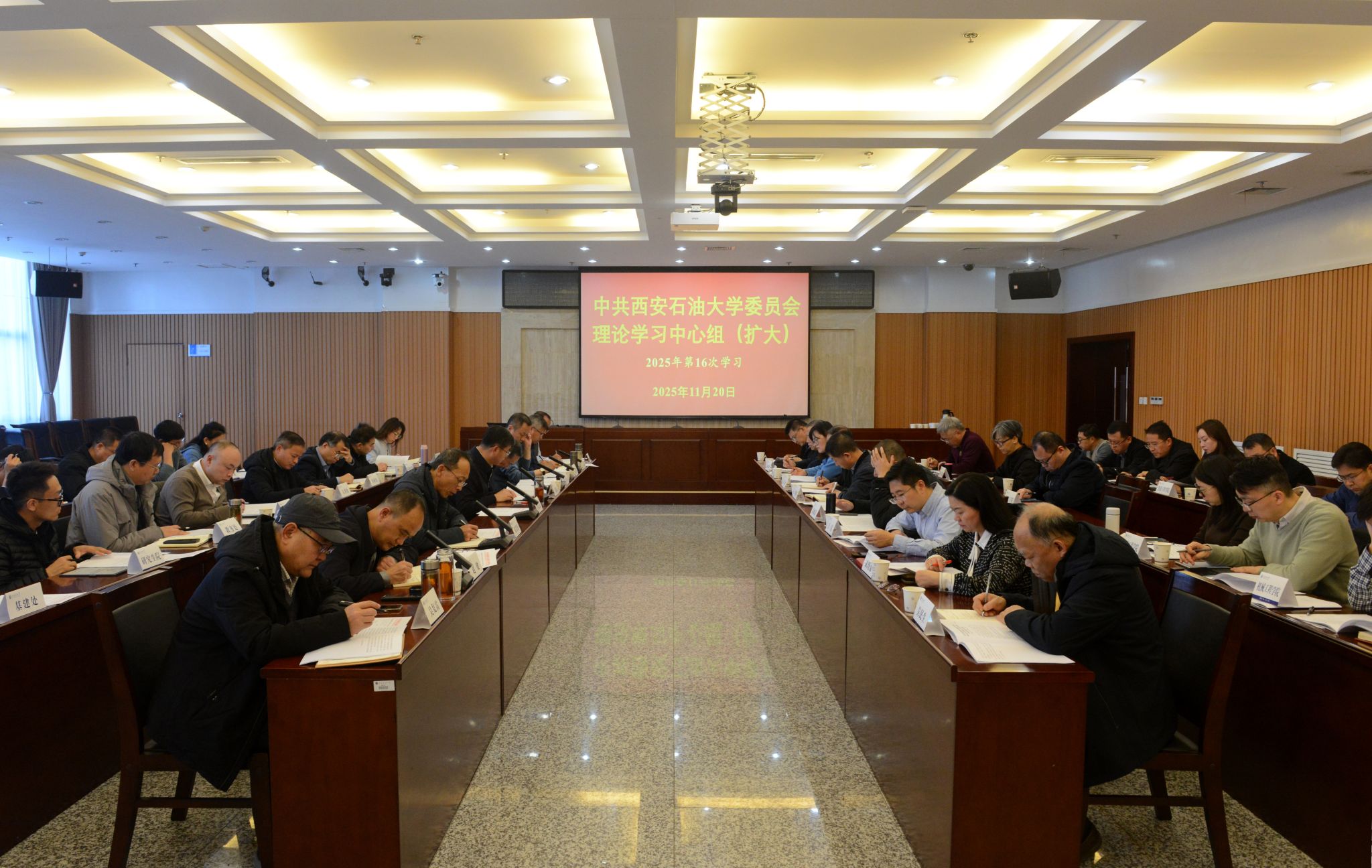 11月20日下午,校黨委理論學(xué)習(xí)中心組(擴(kuò)大)學(xué)習(xí)會(huì)在鄠邑校區(qū)第一會(huì)議室召開(kāi),深入學(xué)習(xí)領(lǐng)會(huì)習(xí)近平總書記在廣東考察時(shí)、在聽(tīng)取海南自由貿(mào)易港建設(shè)工作匯報(bào)時(shí)的重要講話精神,再次專題學(xué)習(xí)《中共中央關(guān)于制定國(guó)民經(jīng)濟(jì)和社會(huì)發(fā)展第十五個(gè)五年規(guī)劃的建議》(以下簡(jiǎn)稱“《‘十五五’規(guī)劃建議》”)。校黨委副書記、校長(zhǎng)王進(jìn)富在主持學(xué)習(xí)及交流研討環(huán)節(jié),就深入領(lǐng)會(huì)和貫徹落實(shí)《“十五五”規(guī)劃建議》精神,以及扎實(shí)推進(jìn)學(xué)?!笆逦濉笔聵I(yè)發(fā)展規(guī)劃編制工作提出了明確要求。