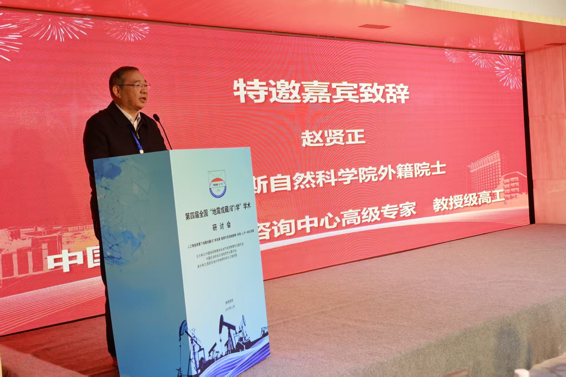 特邀嘉賓俄羅斯自然科學(xué)院外籍院士、中國(guó)石油集團(tuán)咨詢中心高級(jí)專家趙賢正教授代表會(huì)議主辦單位致辭。趙賢正表示,地震成藏(礦)學(xué)自2009年提出以來,已在理論與技術(shù)上取得顯著進(jìn)展,成為指導(dǎo)復(fù)雜地質(zhì)條件下油氣勘探的重要支撐,并呼吁廣大科技工作者加強(qiáng)學(xué)科交叉與產(chǎn)學(xué)研合作,推動(dòng)該學(xué)科向縱深發(fā)展,為我國(guó)能源勘探開發(fā)提供更強(qiáng)有力的理論和技術(shù)保障。