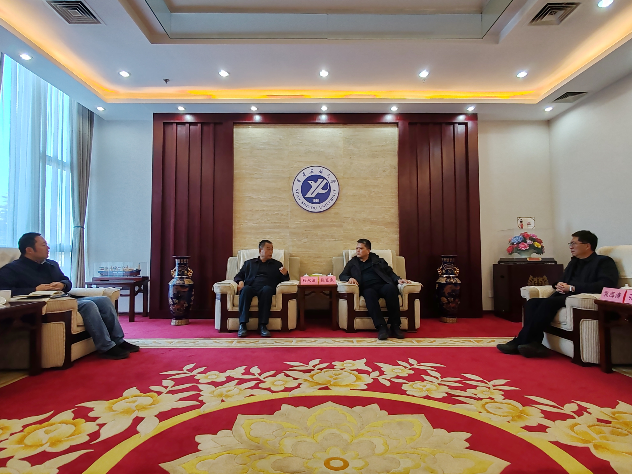 會前,校黨委副書記程永清在圖書館貴賓室會見了榆林能化公司人力資源部副經(jīng)理張富家、油田公司人力資源部副經(jīng)理袁海濤一行,雙方分別回顧了學(xué)校辦學(xué)歷與辦企歷程,圍繞畢業(yè)生就業(yè)、人才聯(lián)合培養(yǎng)、科研攻關(guān)等議題交換了意見。并就立足校企雙方發(fā)展現(xiàn)狀,希望進一步強化校企合作進行了充分交流。