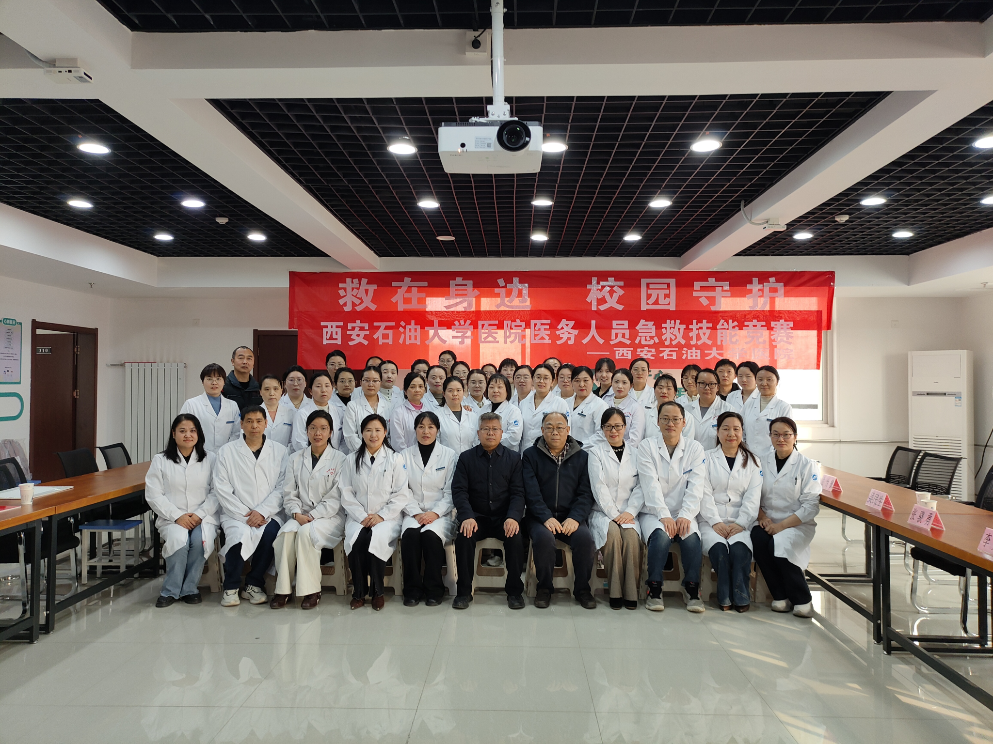 為進一步錘煉醫(yī)務(wù)人員急救專業(yè)素養(yǎng),提升校園應(yīng)急處置工作水平,筑牢師生生命健康安全防線,12月3日,學(xué)校在鄠邑校區(qū)醫(yī)院舉辦醫(yī)務(wù)人員急救技能競賽。副校長張驍勇出席活動并講話,校工會、校醫(yī)院相關(guān)負責(zé)人及全體醫(yī)務(wù)人員參加。