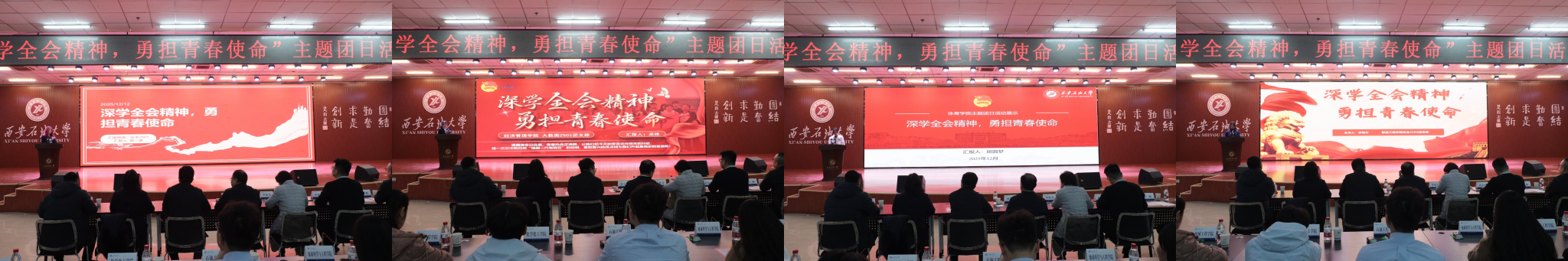 本次活動(dòng)自啟動(dòng)以來,各基層團(tuán)支部圍繞主題開展豐富多樣的團(tuán)日活動(dòng),經(jīng)院(系)擇優(yōu)遴選,16個(gè)優(yōu)秀團(tuán)支部脫穎而出進(jìn)入校級(jí)展示。展示現(xiàn)場(chǎng),各團(tuán)支部緊扣“深學(xué)全會(huì)精神,勇?lián)啻菏姑敝黝},通過PPT匯報(bào)、情景劇演繹、主題演講、短視頻展播等多種創(chuàng)新形式,全方位呈現(xiàn)團(tuán)組織建設(shè)工作成效。從理論學(xué)習(xí)常態(tài)化機(jī)制構(gòu)建到“專業(yè)+實(shí)踐+強(qiáng)國(guó)”的融合實(shí)踐,從志愿服務(wù)的暖心瞬間到校園文化中的青春風(fēng)采,各支部以詳實(shí)數(shù)據(jù)、鮮活案例和深刻感悟,生動(dòng)詮釋了新時(shí)代青年大學(xué)生的理想信念與責(zé)任擔(dān)當(dāng)。
