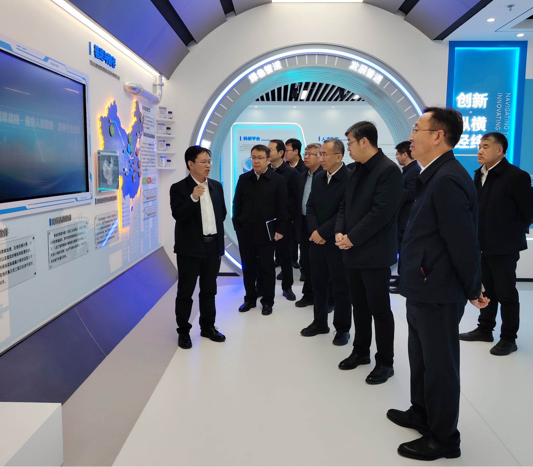 會后,王進富一行參觀了國家管網(wǎng)研究總院科技成果展廳。