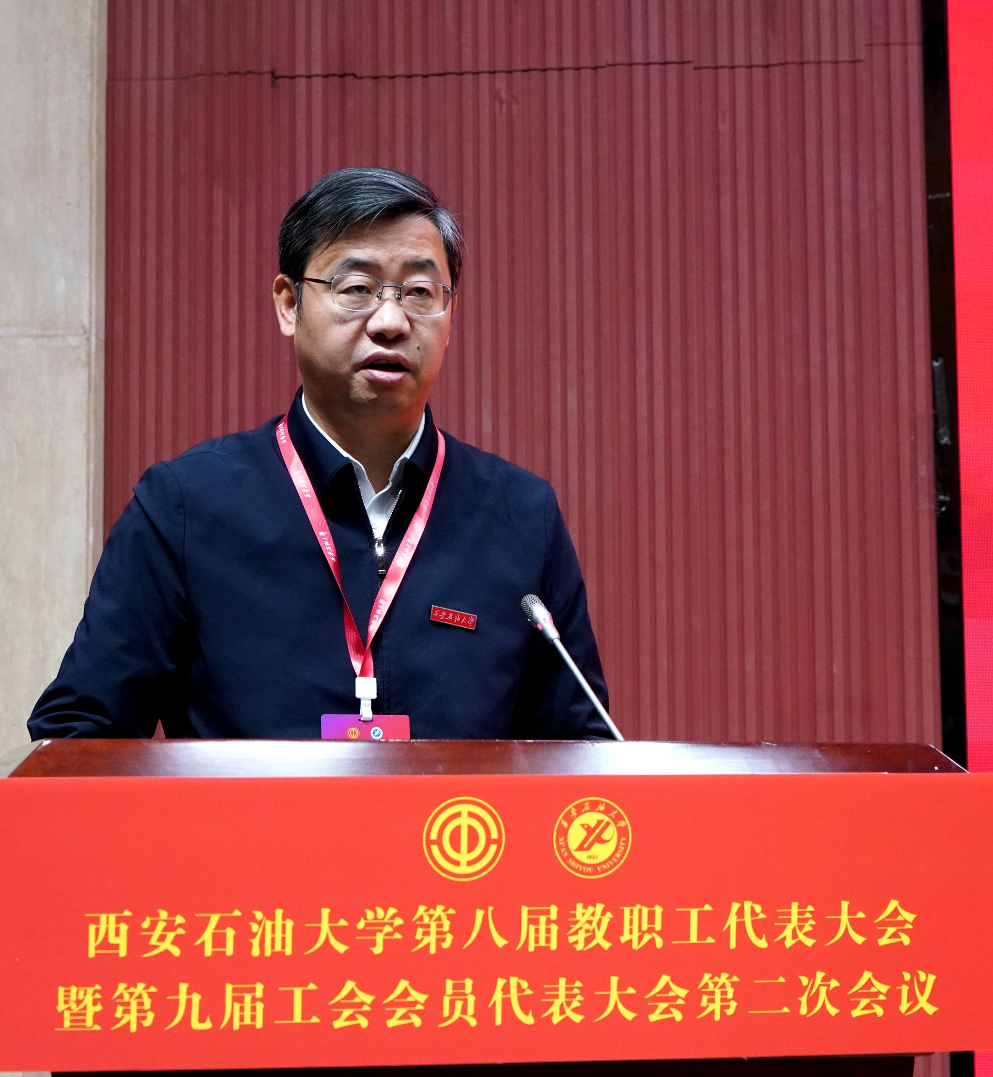 校長王進富作了《與歲功同輝以啟程,攜新程共遠而擘畫——年度報告暨“十五五”規(guī)劃思考》的工作報告,他指出,本次教代會是在學?!笆奈濉睕_刺收官的決勝之年,也是“十五五”謀篇布局的起勢之年召開的一次重要會議,更是全面深化教育科技人才一體改革促進高質(zhì)量發(fā)展的一次會議。報告從建設“三個西石大”的目標出發(fā),全面回顧總結了2025年我校所取得的成就,并指出2025年全校上下緊扣 “學科達標年、人才提升年、改革創(chuàng)新年” 主線,扎實推進 “六大行動”,各項事業(yè)呈現(xiàn)出穩(wěn)中有進、持續(xù)向好的發(fā)展態(tài)勢。特別是2024年以來,全校爭做行動派、跑出加速度,在學科突破、科創(chuàng)增長、人才匯聚等方面實現(xiàn)多項新突破,為 2026 年發(fā)展積累了寶貴經(jīng)驗、奠定了堅實基礎。報告精準分析當前發(fā)展形勢,對照教育強國建設要求、行業(yè)轉型發(fā)展需要、師生校友殷切期盼,科學部署2026 年及今后一個時期的重點任務,為學校朝著特色鮮明的高水平教學研究型大學目標邁進凝聚起磅礴力量。