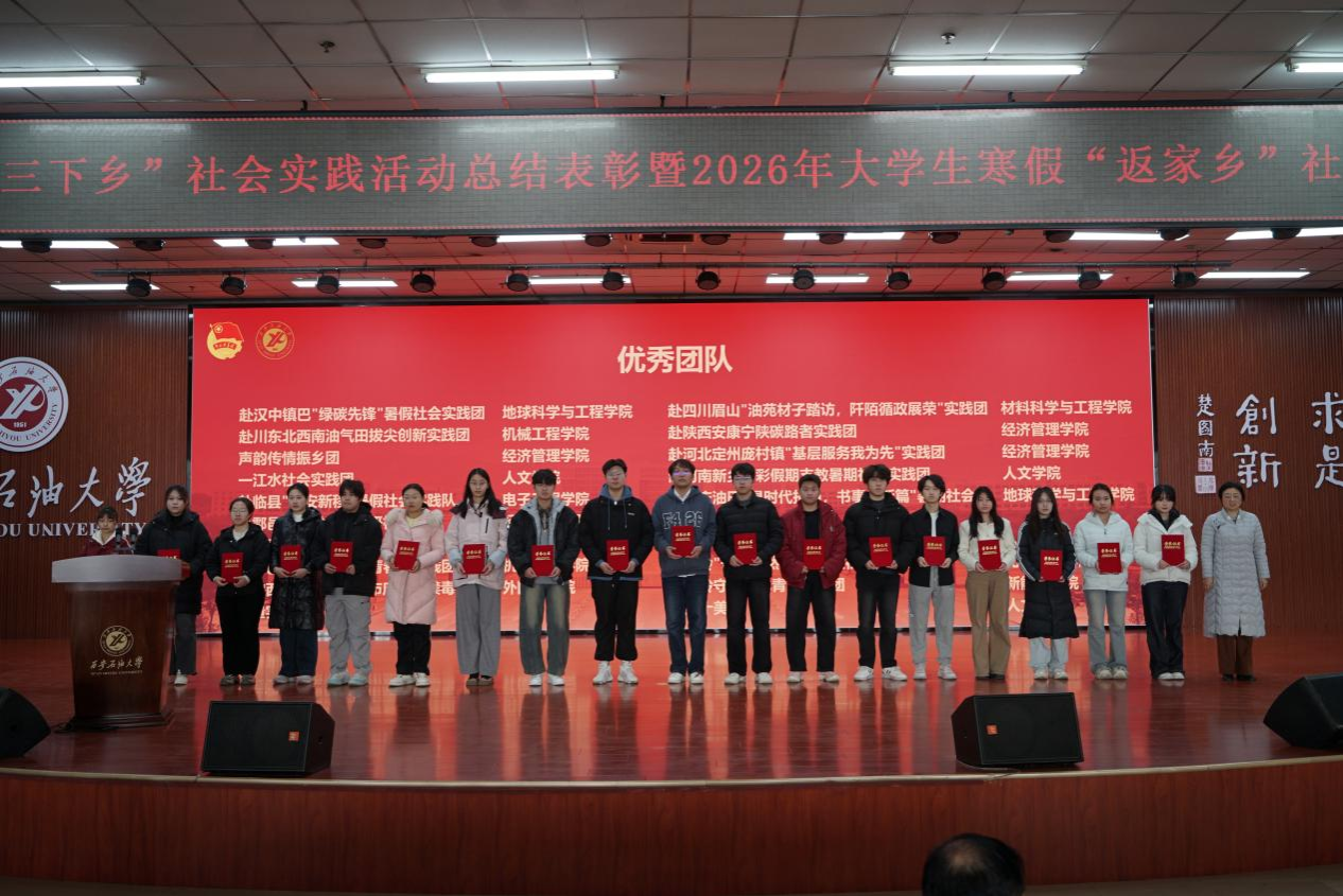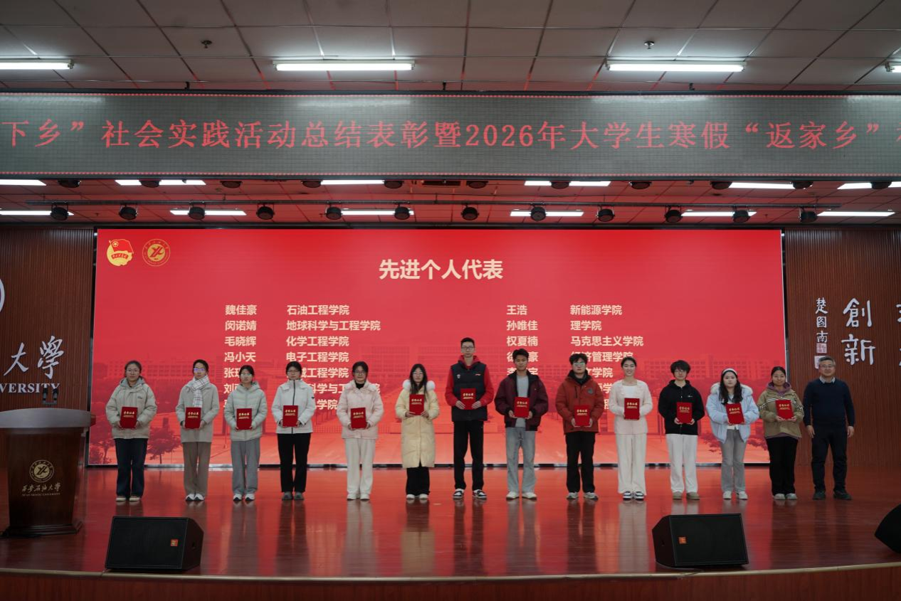 種宇宏代表學(xué)校對在2025年大學(xué)生暑期“三下鄉(xiāng)”社會實踐中獲獎的團隊和個人表示衷心的祝賀,對在社會實踐工作中辛勤付出的指導(dǎo)教師和工作人員表示誠摯感謝,同時對即將參加2026年大學(xué)生寒假“返家鄉(xiāng)”社會實踐的全體師生表示親切的問候和誠摯的祝福。他從我校連續(xù)36年組織學(xué)生赴延安開展社會實踐的歷史傳承出發(fā),結(jié)合“青春為中國式現(xiàn)代化挺膺擔(dān)當(dāng)”的時代主題,系統(tǒng)總結(jié)了本年度社會實踐所取得的豐碩育人成果,并對未來深化實踐育人工作提出要求。他就高質(zhì)量推進我校大學(xué)生社會實踐工作提出了四點希望:一是筑牢信仰之基,在實踐感悟中堅定理想信念。希望大家將社會實踐作為學(xué)習(xí)領(lǐng)會黨的創(chuàng)新理論的生動課堂,在深入基層、觀察國情、服務(wù)群眾中堅定“聽黨話、跟黨走”的政治自覺,將個人理想追求融入國家和民族的事業(yè);二是錘煉過硬之能,在知行合一中增長智慧才干。要秉持學(xué)以致用的態(tài)度,將專業(yè)知識與社會實踐緊密結(jié)合,尤其要立足我校石油石化等特色學(xué)科優(yōu)勢,在解決實際問題中磨煉意志、培養(yǎng)作風(fēng)、提升綜合能力;三是提升實踐之效,在精心組織中服務(wù)社會發(fā)展。要推動社會實踐與專業(yè)教育、思政教育、就業(yè)引導(dǎo)深度融合,設(shè)計“小而精、真而實”的項目,探索建立成果轉(zhuǎn)化機制,實現(xiàn)服務(wù)社會與自我成長的雙贏;四是恪守安全之責(zé),在嚴(yán)密保障下實現(xiàn)行穩(wěn)致遠(yuǎn)。必須將安全放在首位,認(rèn)真做好行前教育培訓(xùn)、應(yīng)急預(yù)案制定和過程管理,確保實踐活動都安全、有序、順利開展。