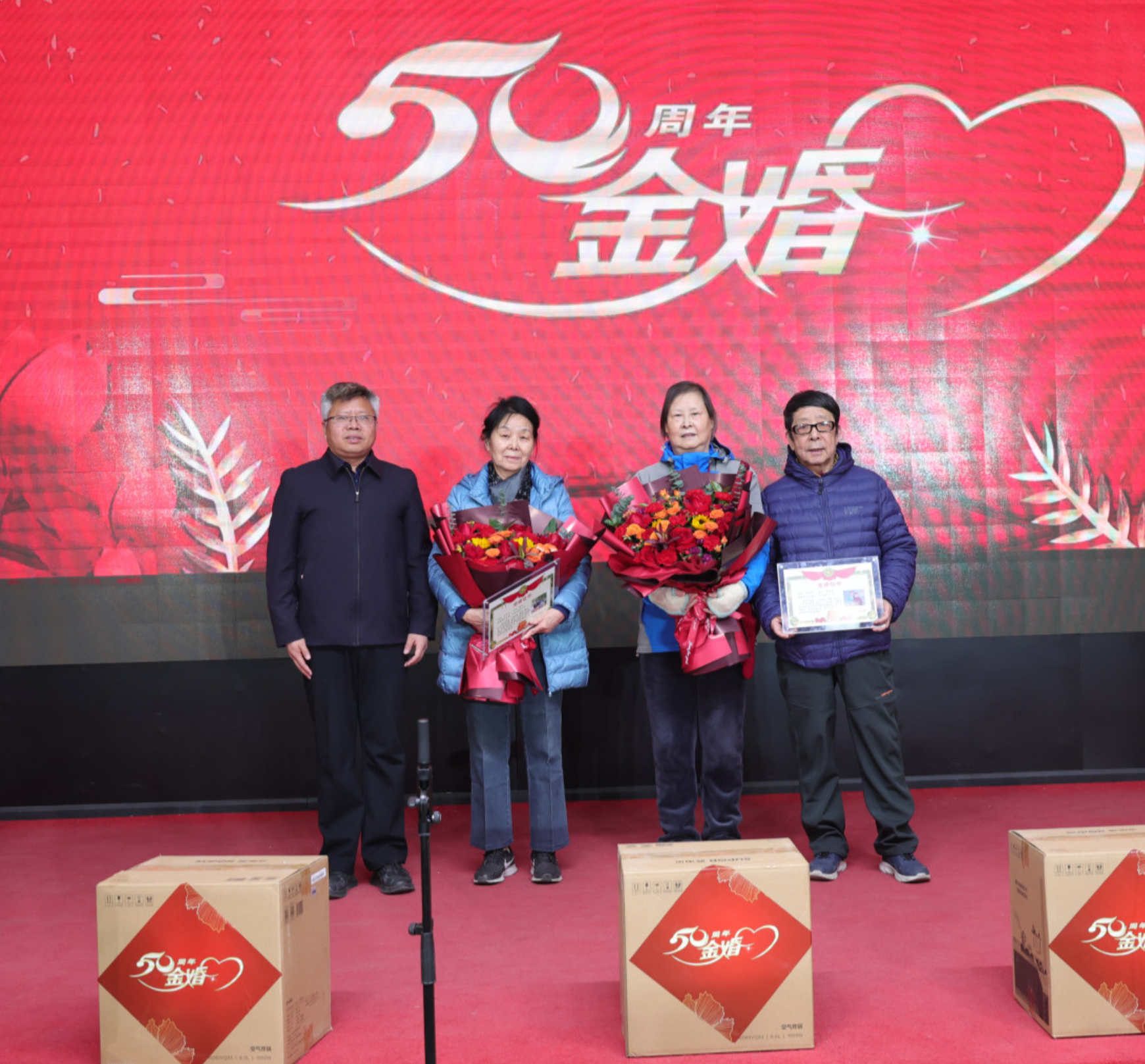聯(lián)歡會(huì)前,大家歡聚一堂,共同見(jiàn)證、慶祝四對(duì)金婚伴侶的珍貴時(shí)刻,并頒發(fā)了證書(shū)、鮮花和紀(jì)念品。