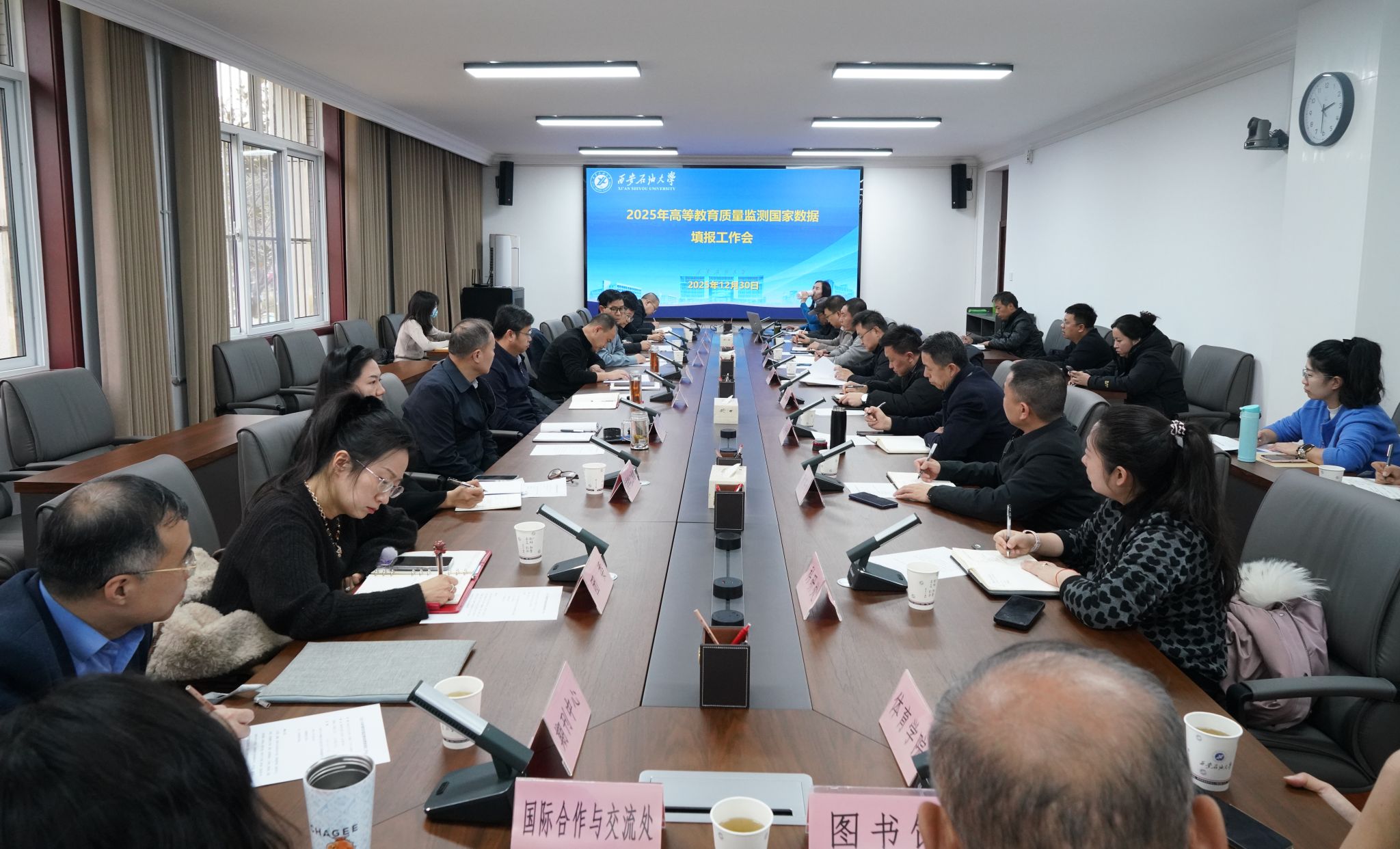 12月30日下午,學(xué)校在鄠邑校區(qū)第三會(huì)議室召開2025年高等教育質(zhì)量監(jiān)測(cè)國(guó)家數(shù)據(jù)填報(bào)工作會(huì)。校長(zhǎng)王進(jìn)富、副校長(zhǎng)趙健出席會(huì)議,黨委辦公室(校長(zhǎng)辦公室)、黨委組織部、黨委學(xué)生工作部、黨委教師工作部、團(tuán)委、發(fā)展規(guī)劃處、人事處、教務(wù)處、實(shí)驗(yàn)室管理處、科研處、研究生院、研究生工作部、財(cái)務(wù)處、國(guó)有資產(chǎn)處、國(guó)際合作與交流處、高教研究與評(píng)估督導(dǎo)中心、圖書館、期刊中心、體育學(xué)院主要負(fù)責(zé)人,各單位數(shù)據(jù)填報(bào)老師參加了會(huì)議。會(huì)議由高教研究與評(píng)估督導(dǎo)中心主任時(shí)保宏主持。