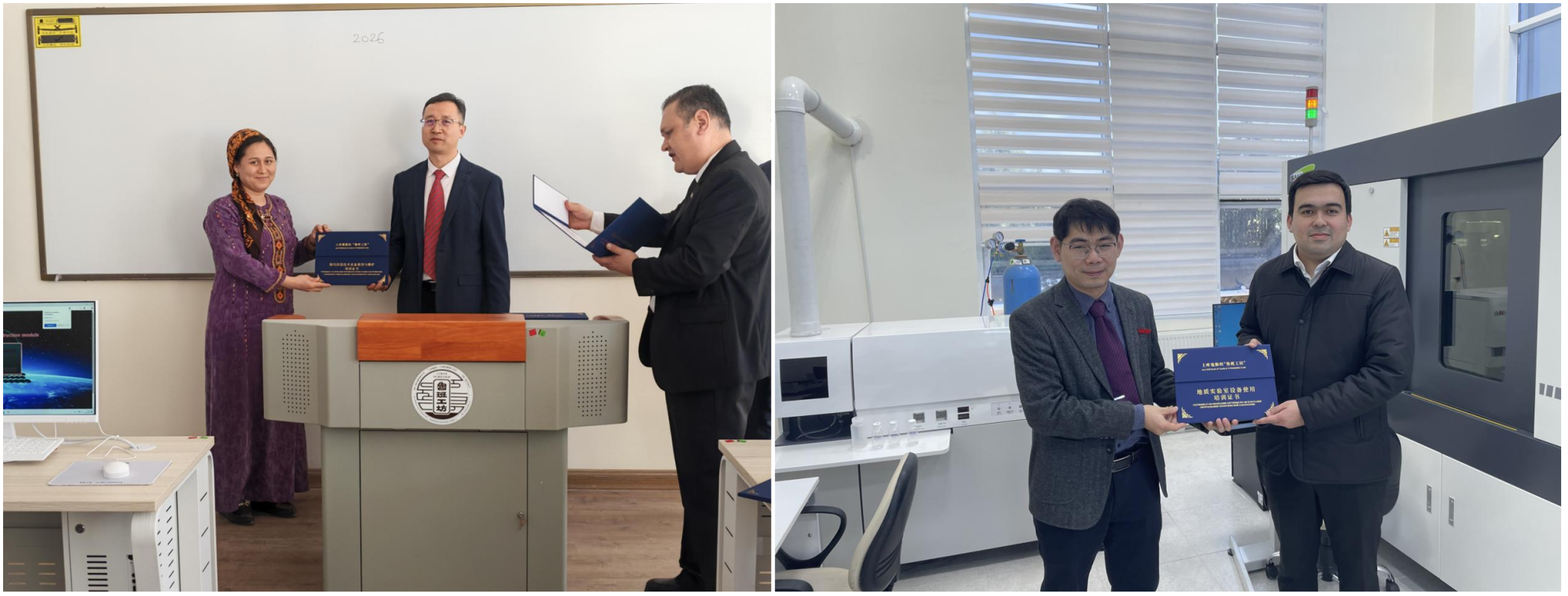 活動上,地質(zhì)設(shè)備供應(yīng)商和信息技術(shù)設(shè)備供應(yīng)商分別與卡卡耶夫國際油氣大學(xué)簽署《土庫曼斯坦魯班工坊首批設(shè)施設(shè)備交付證書》,中土共建院校與設(shè)備供應(yīng)商同步簽署《驗收報告單》。這一系列文件簽署,標(biāo)志著首批設(shè)施設(shè)備技術(shù)交接工作完成,也意味著土庫曼斯坦魯班工坊建設(shè)邁入啟動運營前的后期籌備階段。