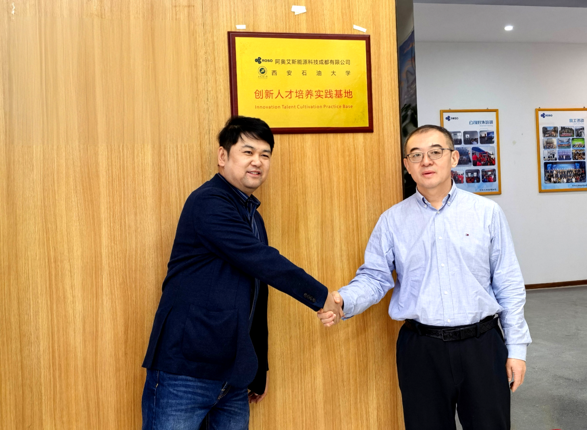 在阿奧艾斯能源科技成都有限公司,常江與公司總經(jīng)理聶鵬共同為校企人才創(chuàng)新培養(yǎng)實踐基地揭牌。揭牌儀式由公司副總經(jīng)理(我校機械電子工程專業(yè)2001屆校友)王啟中主持。常江對基地成功揭牌表示熱烈祝賀,向公司長期以來給予學校發(fā)展的關心與支持致以誠摯感謝。他指出,此次校企人才創(chuàng)新培養(yǎng)實踐基地的揭牌,既是雙方此前共建海南研究院、深化合作成果的升華與延續(xù),更是踐行立德樹人使命、推進教育改革創(chuàng)新的重要載體,也是服務國家戰(zhàn)略、賦能能源產(chǎn)業(yè)高質(zhì)量發(fā)展的關鍵舉措。