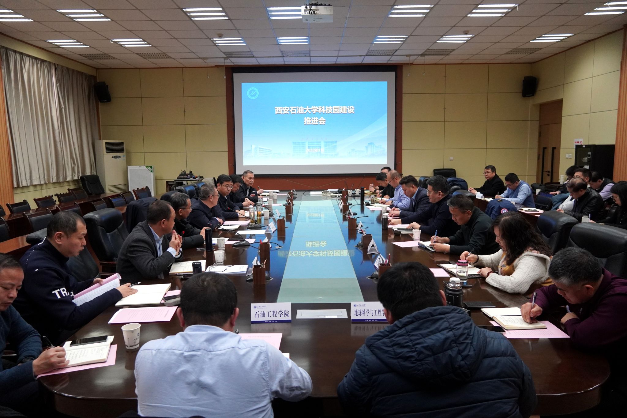 1月19日上午,學??萍紙@建設工作推進會在雁塔校區(qū)會議中心第一會議室召開。校黨政領導常江、王進富、張木、蘇文甫、趙健出席會議。黨委辦公室(校長辦公室)、組織部、發(fā)展規(guī)劃處等職能部門負責人,石油工程學院、地球科學與工程學院等相關學院及邊際油氣開發(fā)技術研究院負責人,東方石化股份有限公司董事長劉浩參加會議。會議由校長王進富主持。