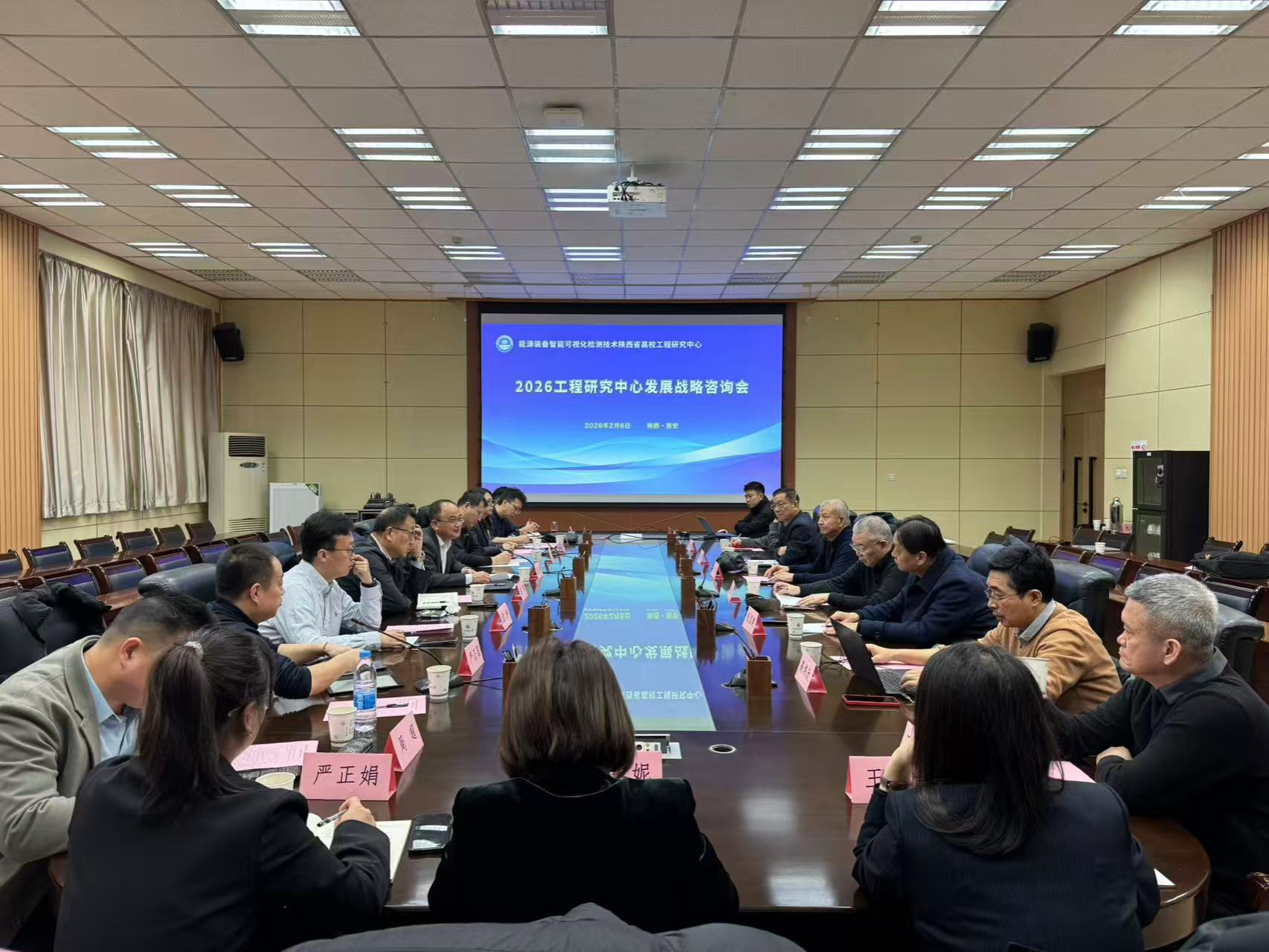 2月6日下午,能源裝備智能可視化檢測技術陜西省高校工程研究中心發(fā)展戰(zhàn)略咨詢會在我校雁塔校區(qū)會議中心第一會議室召開。副校長趙健出席會議并致辭。工程中心技術委員會主任雷群教授,工程中心技術委員會部分專家委員,工程中心主任委員會主要負責人,科技處、教務處、電子工程學院等單位主要負責人出席會議,會議由電子工程學院黨委書記潘娜主持。