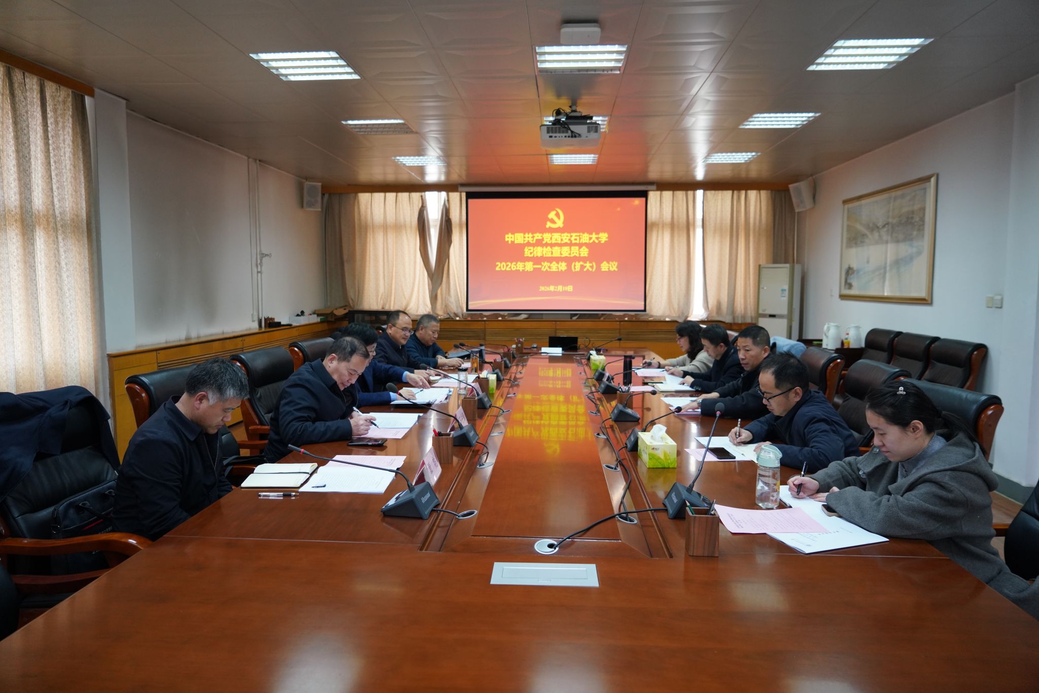 2月10日下午,學校紀委在雁塔校區(qū)辦公樓五樓會議室組織召開紀委會(擴大)會議,深入學習貫徹二十屆中央紀委五次全會和十四屆省紀委五次全會精神,研究部署具體貫徹落實舉措。校黨委副書記、紀委書記、監(jiān)察專員王輝強主持會議并講話。全體紀委委員,紀檢監(jiān)察和巡察干部參加會議。