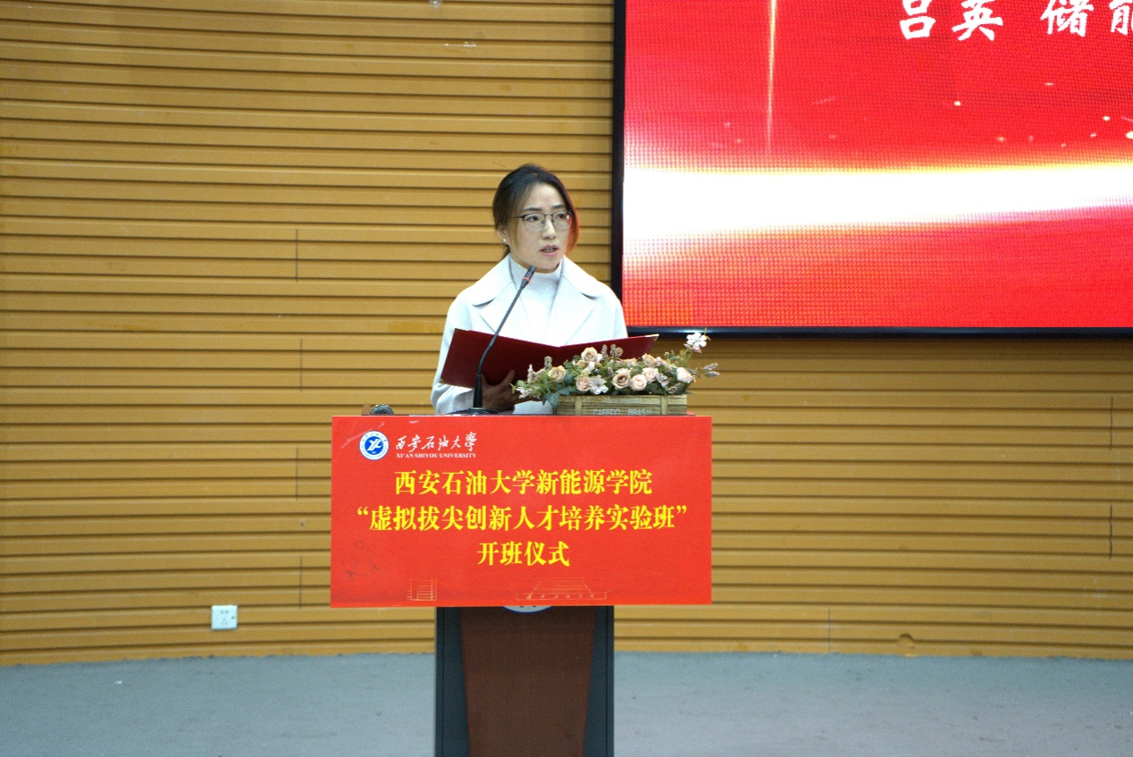 為深入推進(jìn)人才培養(yǎng)模式改革,全面落實(shí)立德樹人根本任務(wù),著力培育適配國(guó)家“雙碳”戰(zhàn)略與能源強(qiáng)國(guó)建設(shè)需求的拔尖創(chuàng)新人才,3月18日下午,新能源學(xué)院首屆“虛擬拔尖創(chuàng)新人才培養(yǎng)實(shí)驗(yàn)班”開班儀式在鄠邑校區(qū)崇文樓118報(bào)告廳順利舉行。校黨委副書記程永清出席儀式并講話,中石化綠源地?zé)崮埽兾鳎╅_發(fā)有限公司執(zhí)行董事兼總經(jīng)理劉斌、陜西工程勘察研究院有限公司總工程師杜明、陜西眾森電能科技有限公司常務(wù)副總經(jīng)理、眾森檢測(cè)股份有限公司董事長(zhǎng)兼總經(jīng)理冉旭等企業(yè)導(dǎo)師應(yīng)邀出席。學(xué)校相關(guān)職能部門負(fù)責(zé)人、新能源學(xué)院領(lǐng)導(dǎo)班子成員、實(shí)驗(yàn)班班主任及全體入選學(xué)生共同參加儀式。儀式由新能源學(xué)院黨委副書記袁家寶主持。