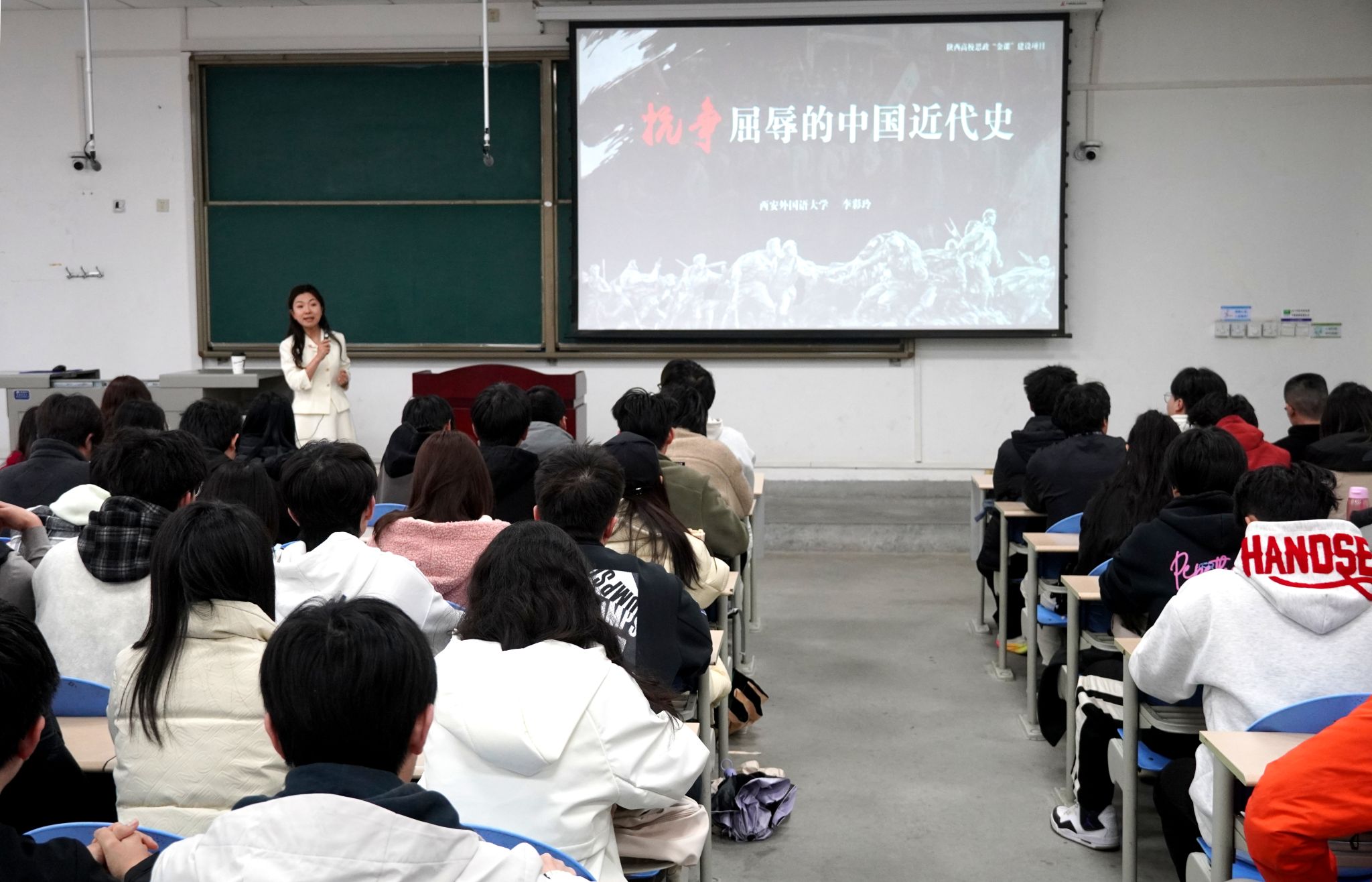 李彩玲以“抗?fàn)幥璧闹袊贰睘橹黝},以“為何擁有五千年文明的泱泱大國在近代屢遭欺凌?”“是什么讓中華民族在近代歷盡劫難,屢遭侵略而不亡?”“站在新時代的今天,回顧中國近代史,我們到底該怎么做?”三個問題徐徐鋪陳展開,以歷史之問、時代之問、青年之問為切入,深刻闡釋中國近代屈辱與抗?fàn)幍膲验煔v程。課程系統(tǒng)回顧了1840年以來國家蒙辱、人民蒙難、文明蒙塵的深重劫難,講述了無數(shù)仁人志士救亡圖存的艱辛探索,鮮明揭示中國共產(chǎn)黨的誕生是扭轉(zhuǎn)民族命運(yùn)的關(guān)鍵抉擇,深刻闡明只有中國共產(chǎn)黨才能救中國、才能發(fā)展中國的歷史必然。課程立足當(dāng)前國際形勢,引導(dǎo)師生清醒認(rèn)識風(fēng)險挑戰(zhàn),引用習(xí)近平總書記“以史為鑒、開創(chuàng)未來”重要論述,勉勵廣大青年從百年滄桑中汲取奮進(jìn)力量,銘記歷史、珍愛和平、開創(chuàng)未來。
