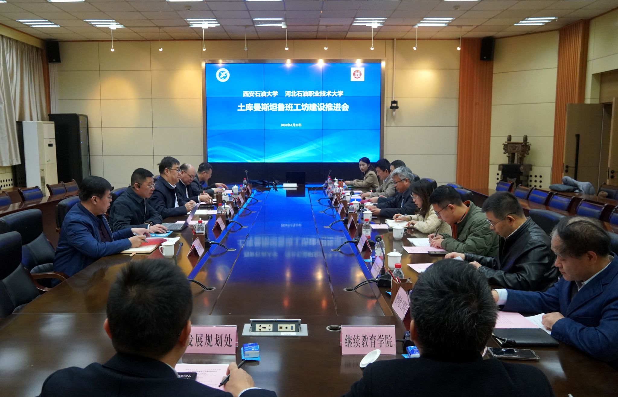 3月23日上午,河北石油職業(yè)技術(shù)大學(xué)副校長馬顯才一行到訪我校,雙方在雁塔校區(qū)會(huì)議中心第二會(huì)議室舉行土庫曼斯坦魯班工坊建設(shè)推進(jìn)會(huì)。副校長張驍勇主持會(huì)議。