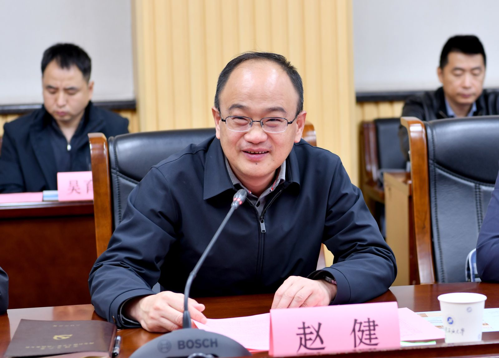 校地對接交流會在我校鄠邑校區(qū)第二會議室舉行,副校長趙健、種宇宏,鹽城市科技局副局長、建湖縣黨組成員、科技鎮(zhèn)長團團長陳永井,中共建湖縣委組織部副部長、人才辦主任孫盤檜及雙方相關部門負責人、企業(yè)家代表參會,會議由機械工程學院院長劉少胡主持。