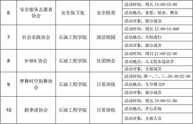 西安石油大學(xué)2016—2017學(xué)年第二學(xué)期第四周社團(tuán)活動(dòng)一覽表