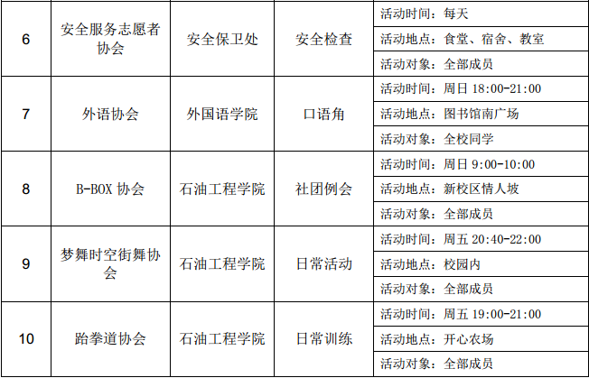 西安石油大學2016—2017學年第二學期第二周社團活動一覽表