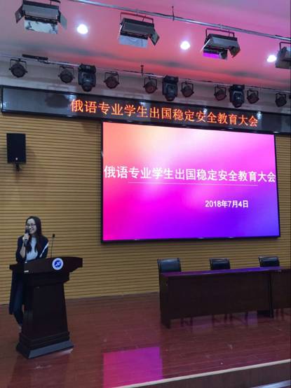 2018年7月4日晚19:30,我院于三號(hào)院系樓就業(yè)指導(dǎo)中心舉行2018年俄語專業(yè)學(xué)生出國穩(wěn)定安全教育大會(huì),本次大會(huì)主講人為外國語學(xué)院2016級(jí)輔導(dǎo)員李洋甜老師,我院16級(jí)俄語專業(yè)學(xué)生參加了此次大會(huì)。
