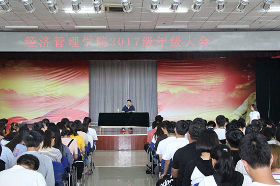 2018年6月13日12時10分,經(jīng)濟管理學(xué)院在新校區(qū)騰輝大學(xué)生活動中心成功召開了經(jīng)管院2017級年級大會。經(jīng)濟管理學(xué)院學(xué)生管理辦公室主任劉冰老師、團學(xué)指導(dǎo)老師兼2017級學(xué)生輔導(dǎo)員王璟老師出席了本次會議。經(jīng)濟管理學(xué)院2017級全體學(xué)生參加了此次大會。