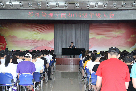 6月13日上午,經(jīng)濟(jì)管理學(xué)院2016級年級大會在鄠邑校區(qū)騰輝大學(xué)生活動中心召開。輔導(dǎo)員武威老師主持,2016級600余名學(xué)生參加。